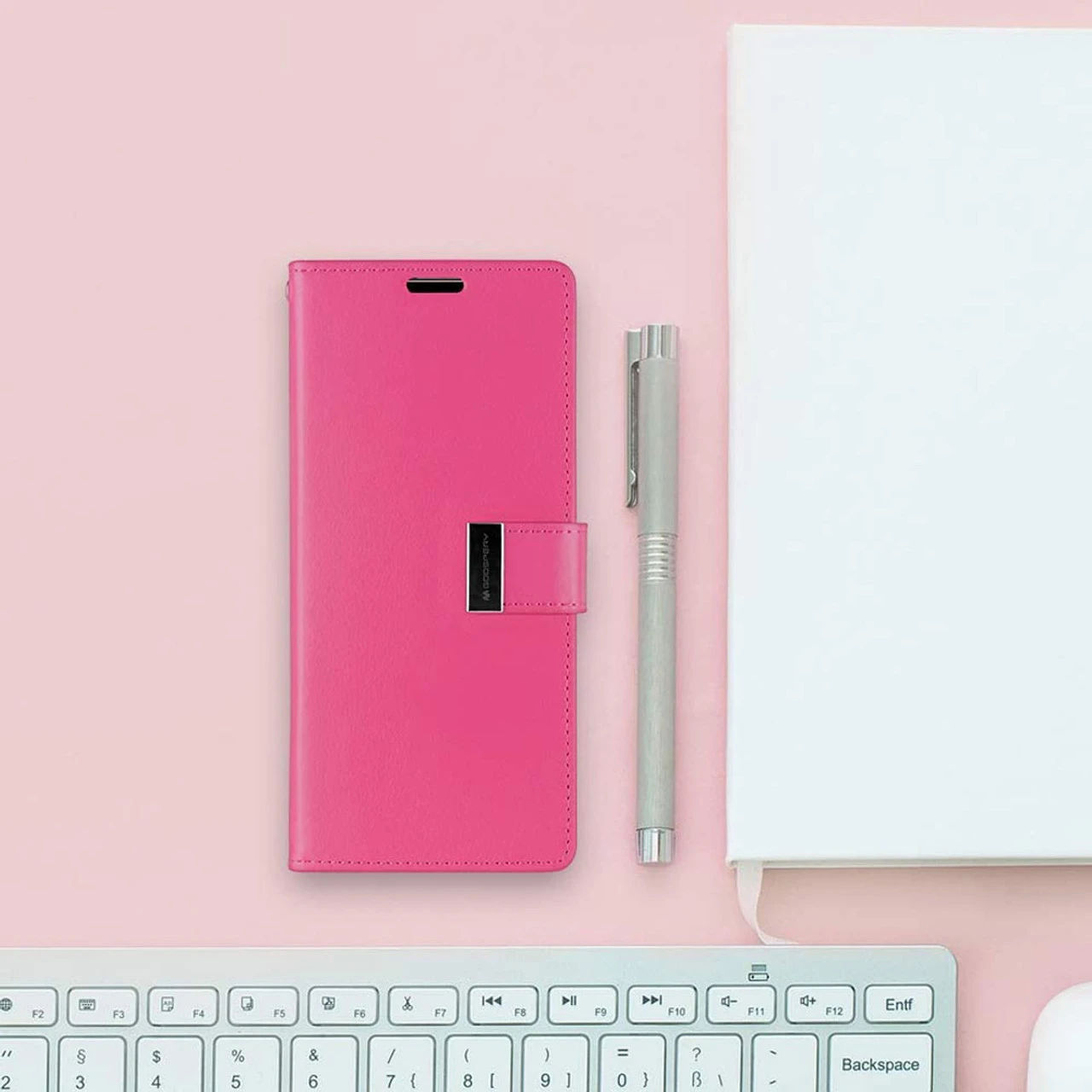 Hot Pink Genuine Mercury Rich Diary Wallet Case For Galaxy S21 Ultra