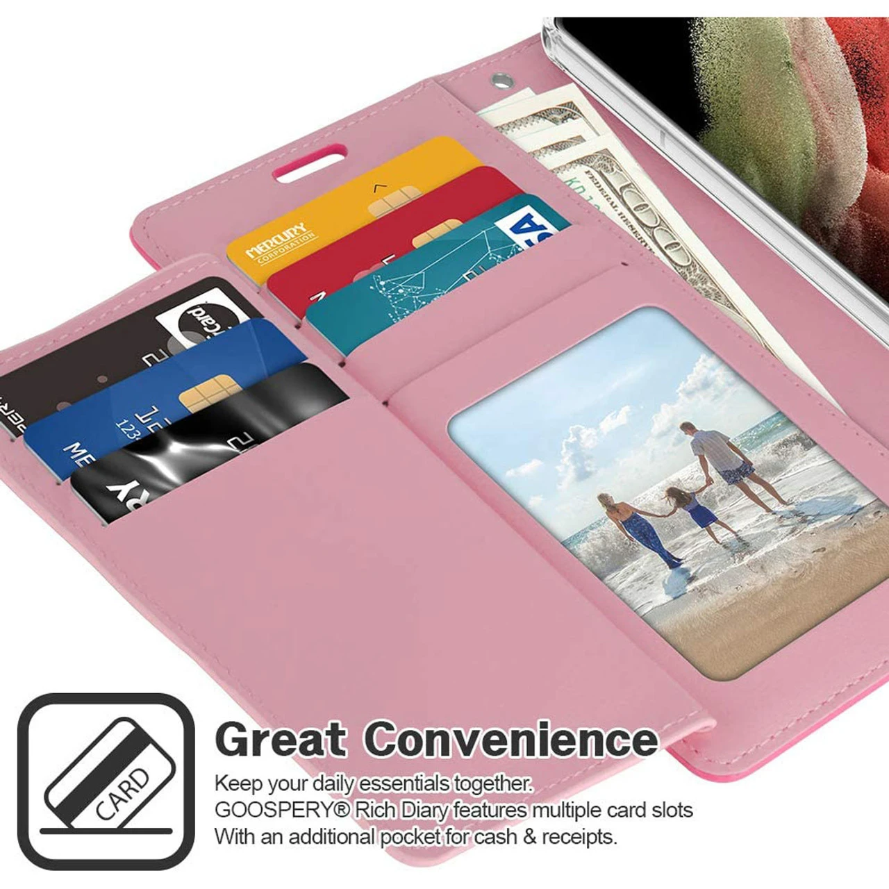 - 1 x Hot Pink Genuine Mercury Rich Diary Wallet Case For Galaxy S21 Ultra