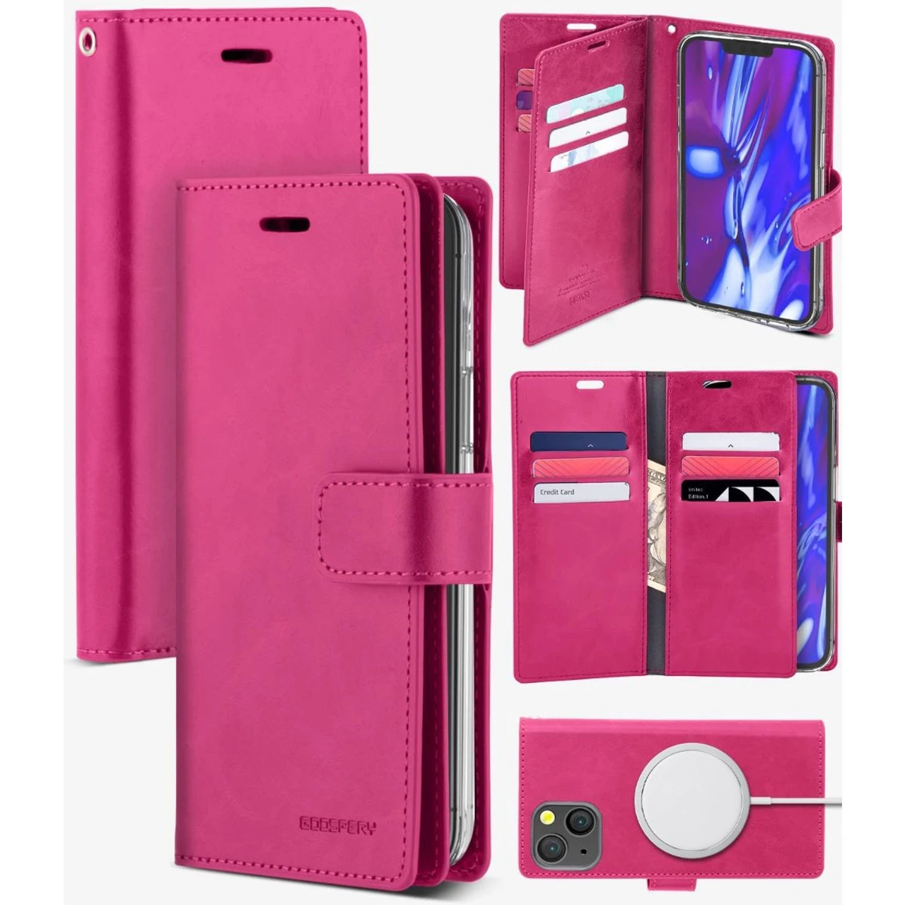 - 1 x Hot Pink iPhone 14 Plus Mercury Mansoor 9 Card Slot Wallet Case