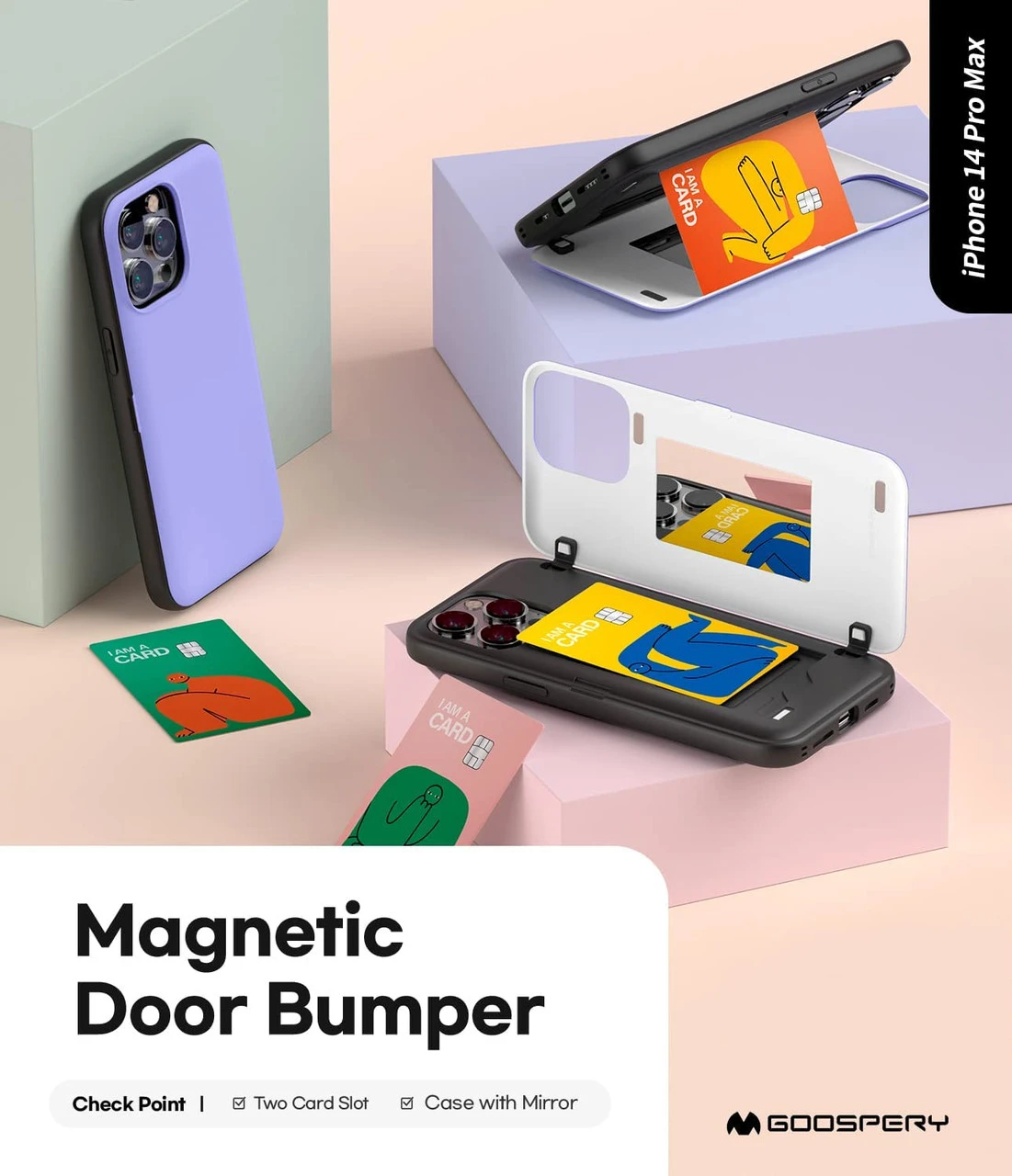 Lilac Goospery Magnetic Door Bumper Card Holder Case For iPhone 14 Pro Max