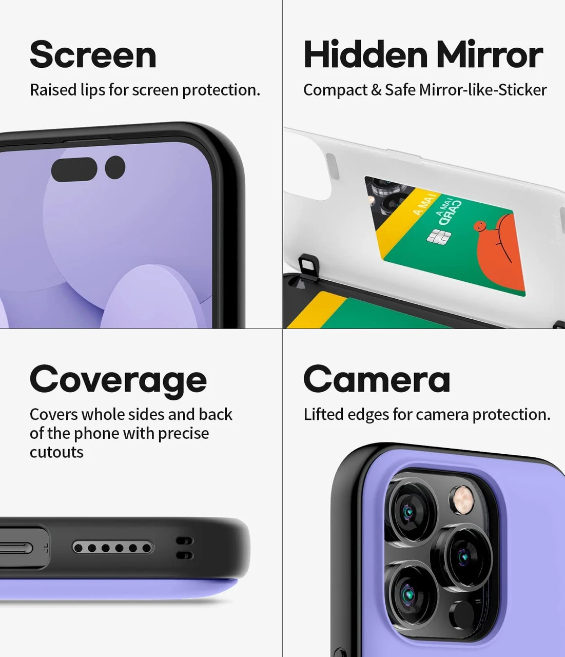 - The pocket friendly lightweight slim iPhone 14 Pro Max Lilac Card Holder Case offers precise cutouts and allow easy access to all buttons and ports. Fits snugly over the volume buttons, side button, and curves of the phone.