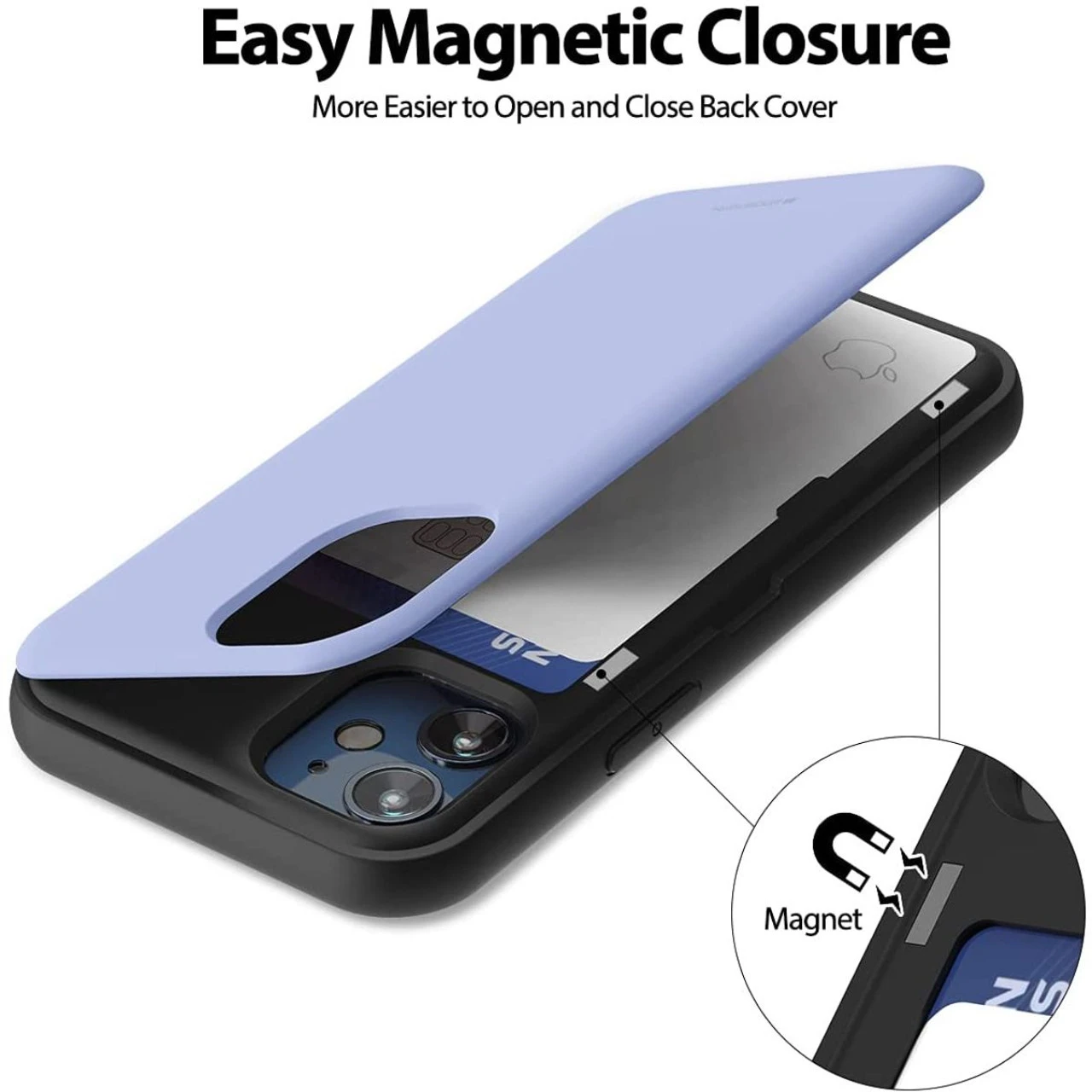 - Magnetic closure makes easier to open and close back cover. If you use your card to hold back cover as a stand, you can enjoy video watching and games.