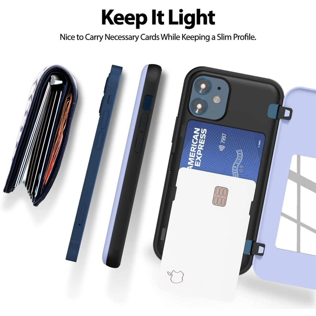 - The pocket friendly lightweight slim iPhone 12 Mini Card Holder Case offers precise cutouts and allow easy access to all buttons and ports. Fits snugly over the volume buttons, side button, and curves of the phone.