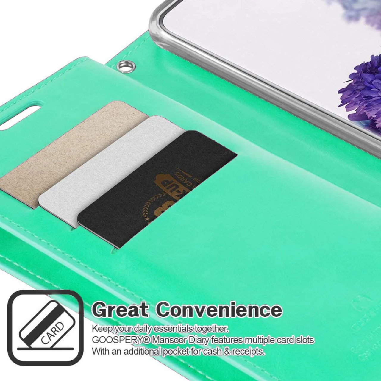 - Â Â Â 1 x Mint Green Mercury Mansoor Diary Card Holder Wallet For Galaxy A14 5G