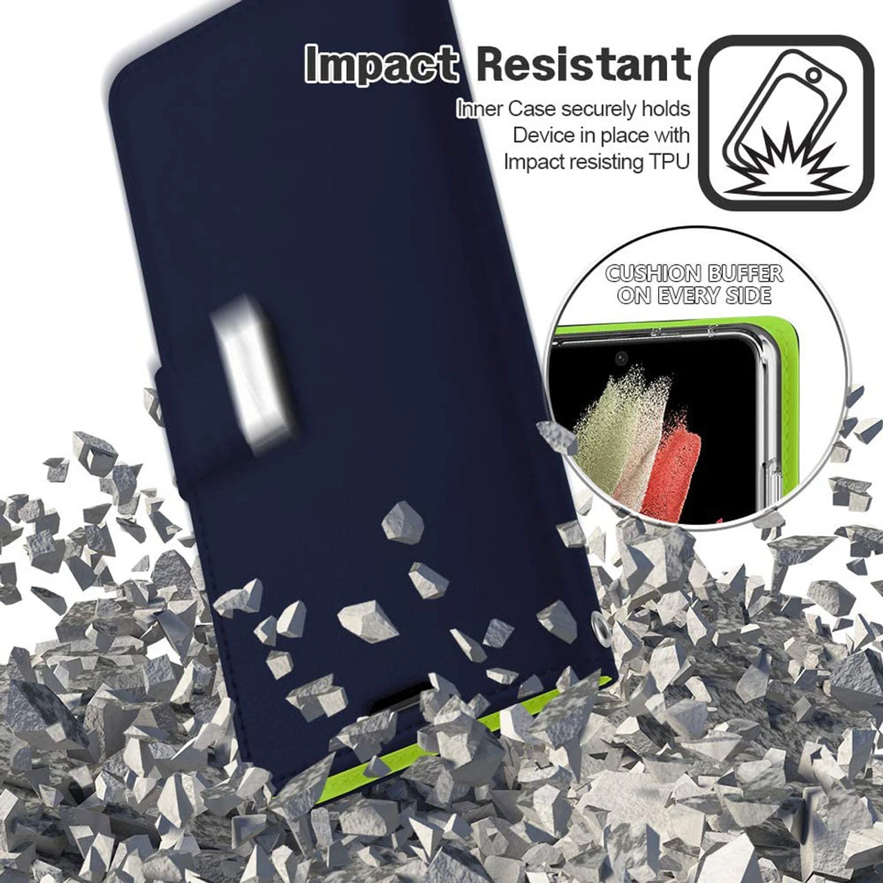 Inner case made with Premium TPU for maximum shock absorption, providing additional protection