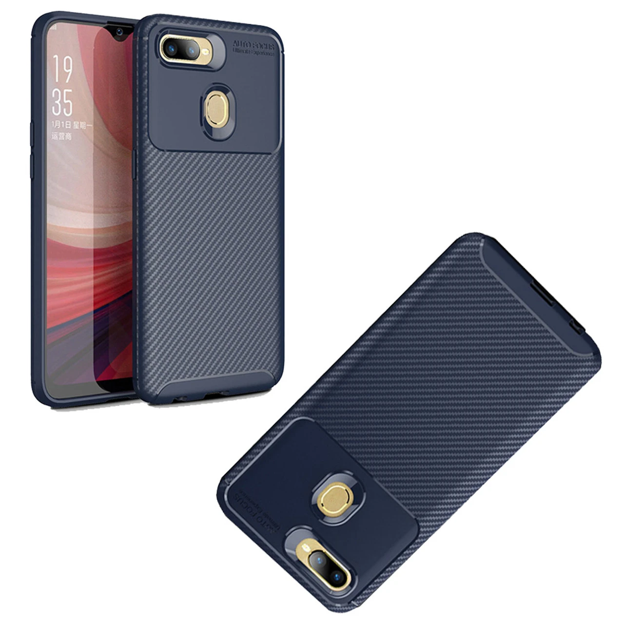 Navy Slim Armor Carbon Fibre Case Cover For Oppo AX5 / A3S