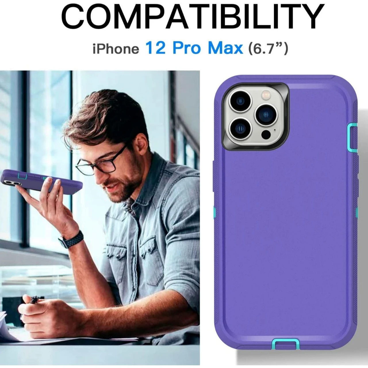 - 1 x Purple Full Body Heavy Duty Defender Case For iPhone 12 Pro Max