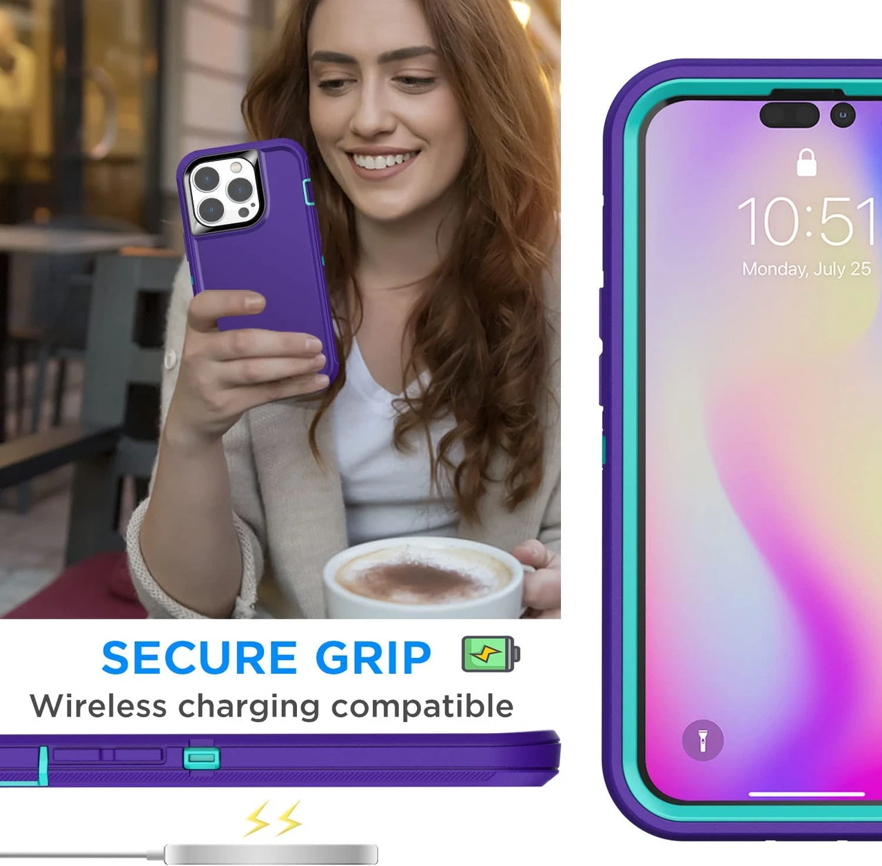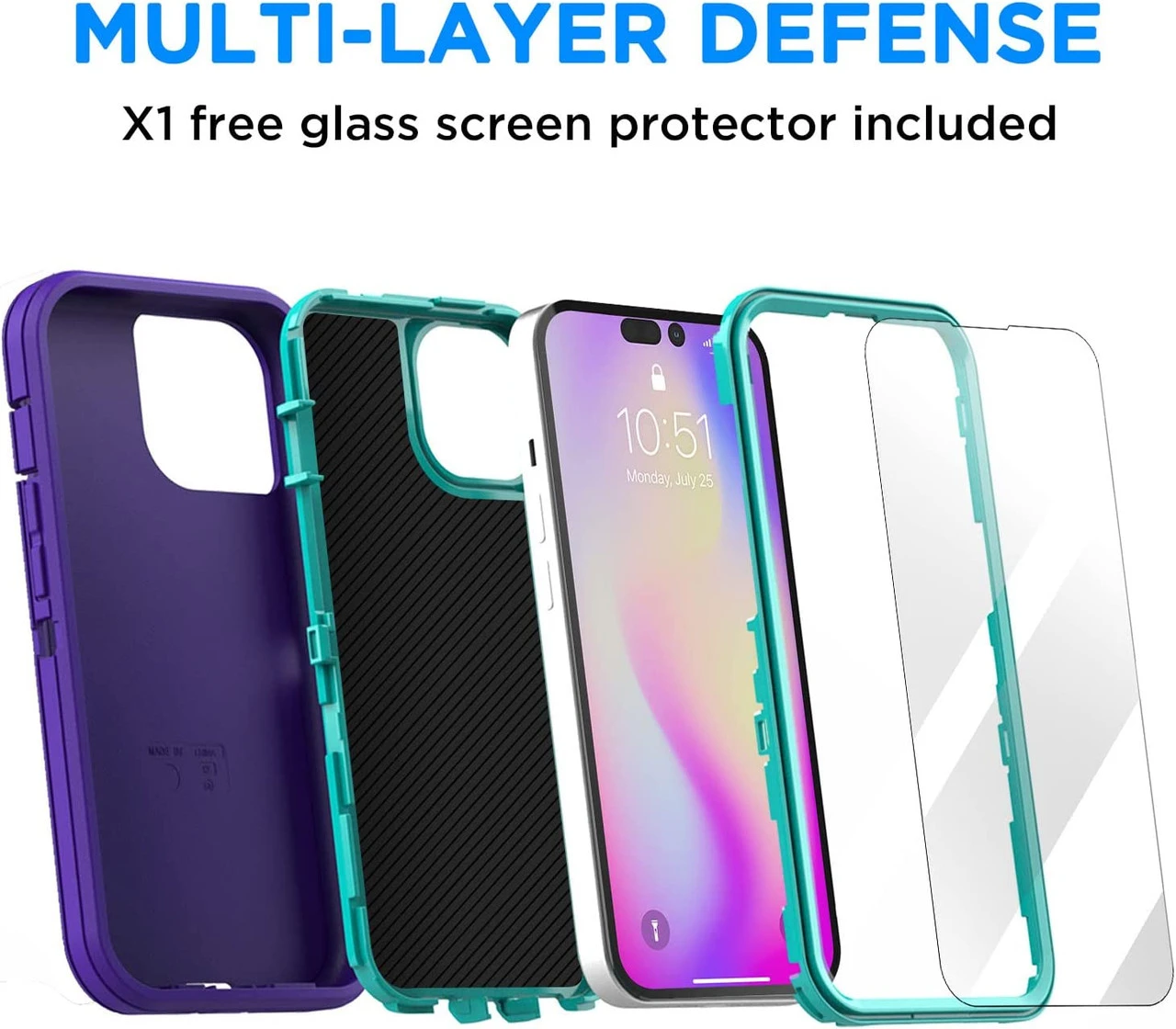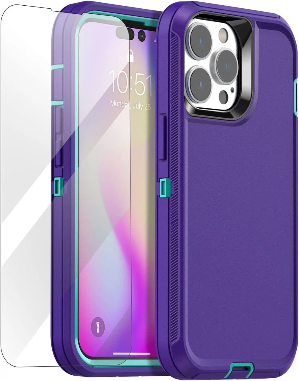 - 1 x Purple Tradies Heavy Duty Military Defender Case For iPhone 14 Pro