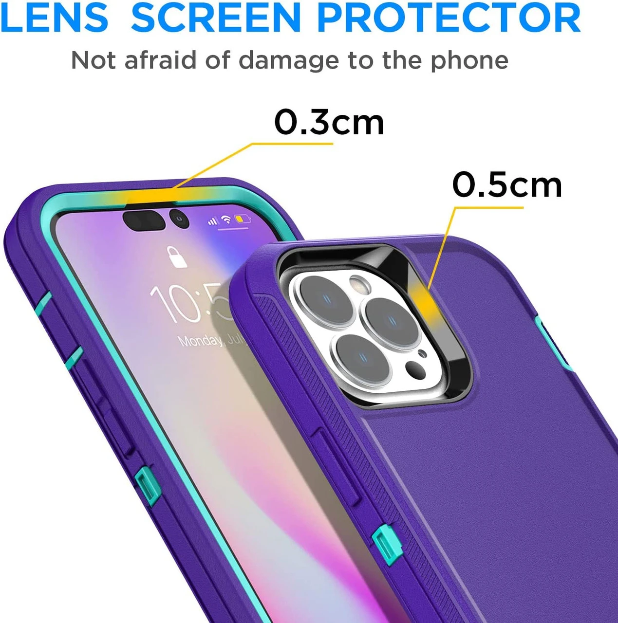 Purple Tradies Heavy Duty Military Defender Case For iPhone 14 Pro
