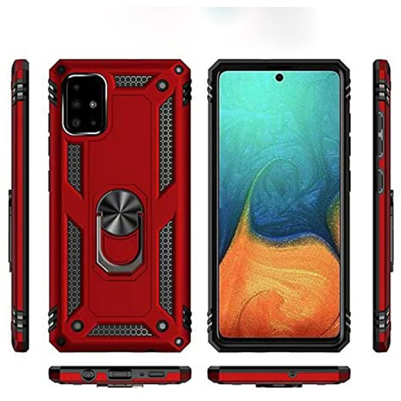 Red Galaxy A51 Slim Armor 360 Rotating Metal Ring Stand Case Cover