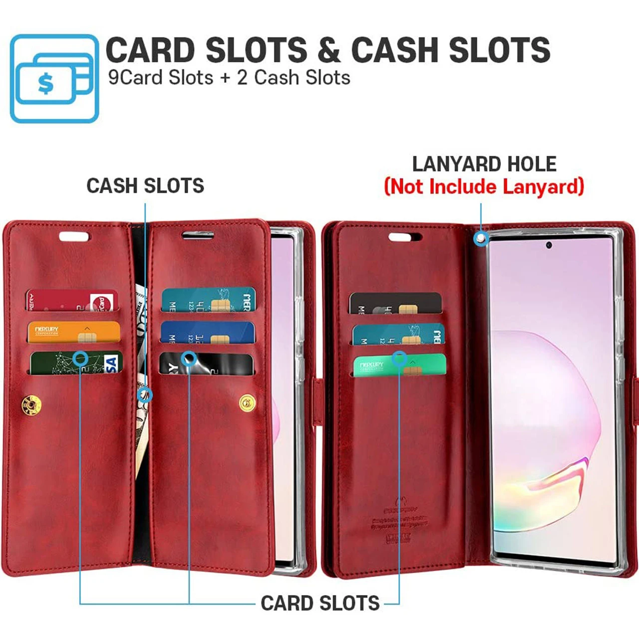 - 1 x Red Galaxy Note 20 Ultra Mercury Mansoor 9 Card Slot Wallet Case