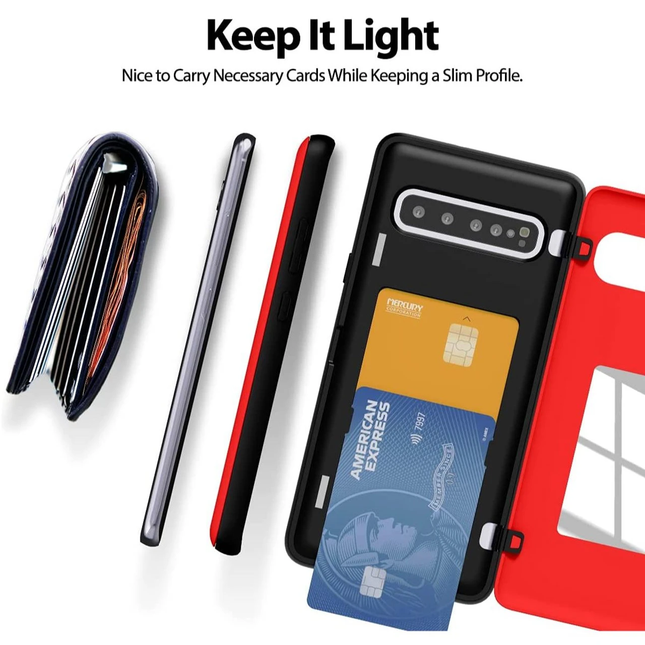 - The pocket friendly lightweight slim Galaxy S10 5G Card Holder Case offers precise cutouts and allow easy access to all buttons and ports. Fits snugly over the volume buttons, side button, and curves of the phone.