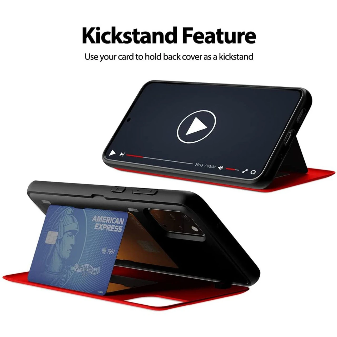 - Magnetic closure makes easier to open and close back cover. If you use your card to hold back cover as a stand, you can enjoy video watching and games.