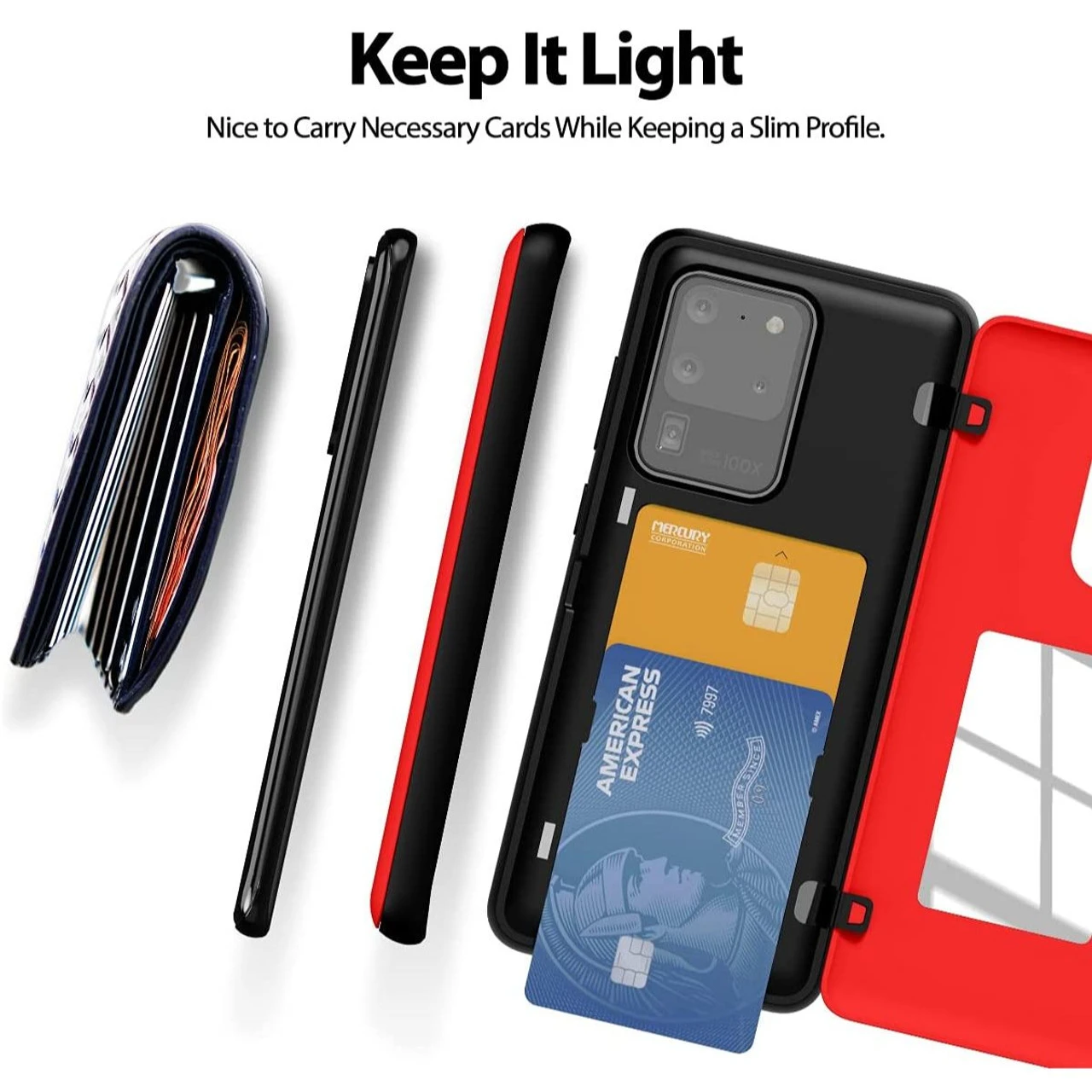 - The pocket friendly lightweight slim Galaxy S20 Ultra Card Holder Case offers precise cutouts and allow easy access to all buttons and ports. Fits snugly over the volume buttons, side button, and curves of the phone.