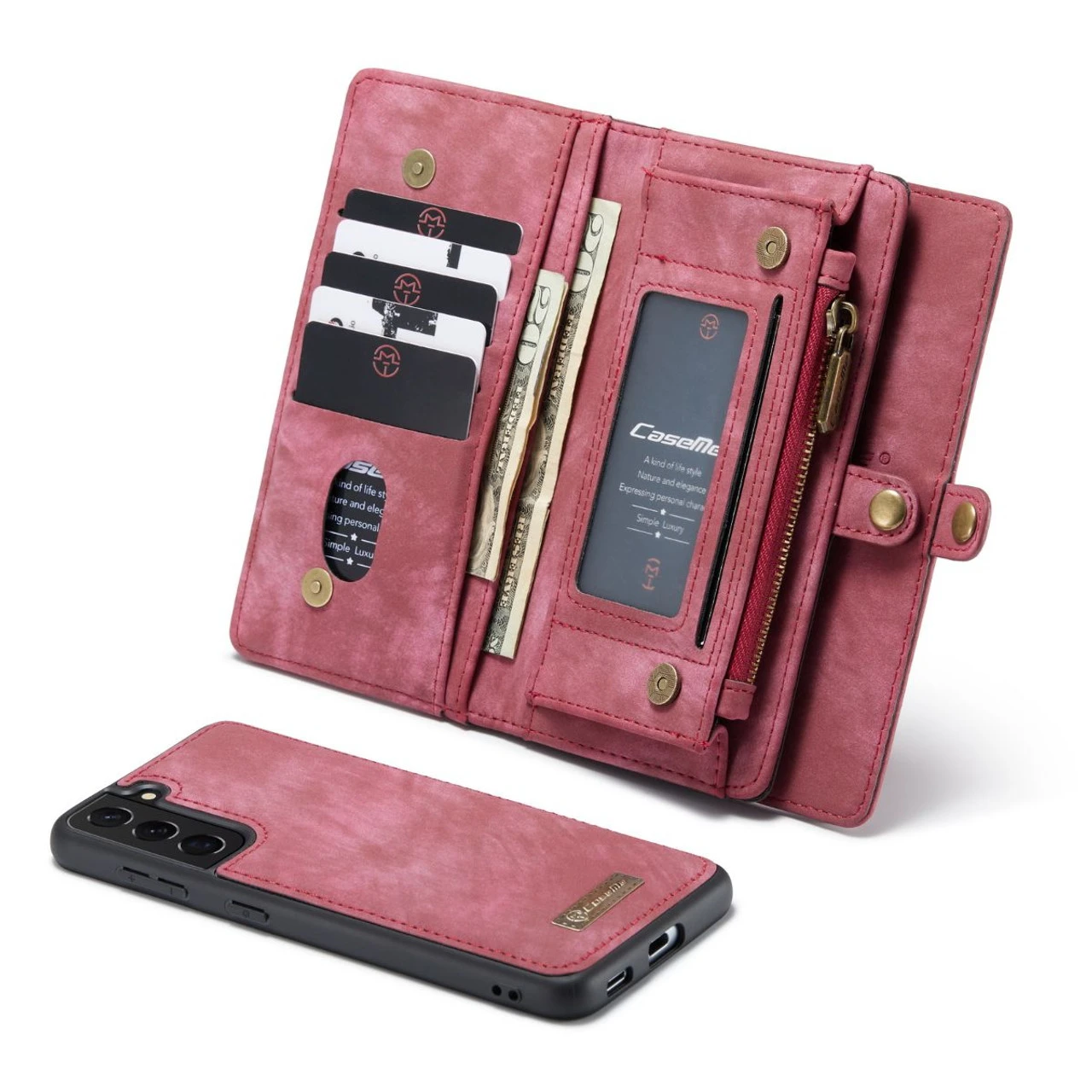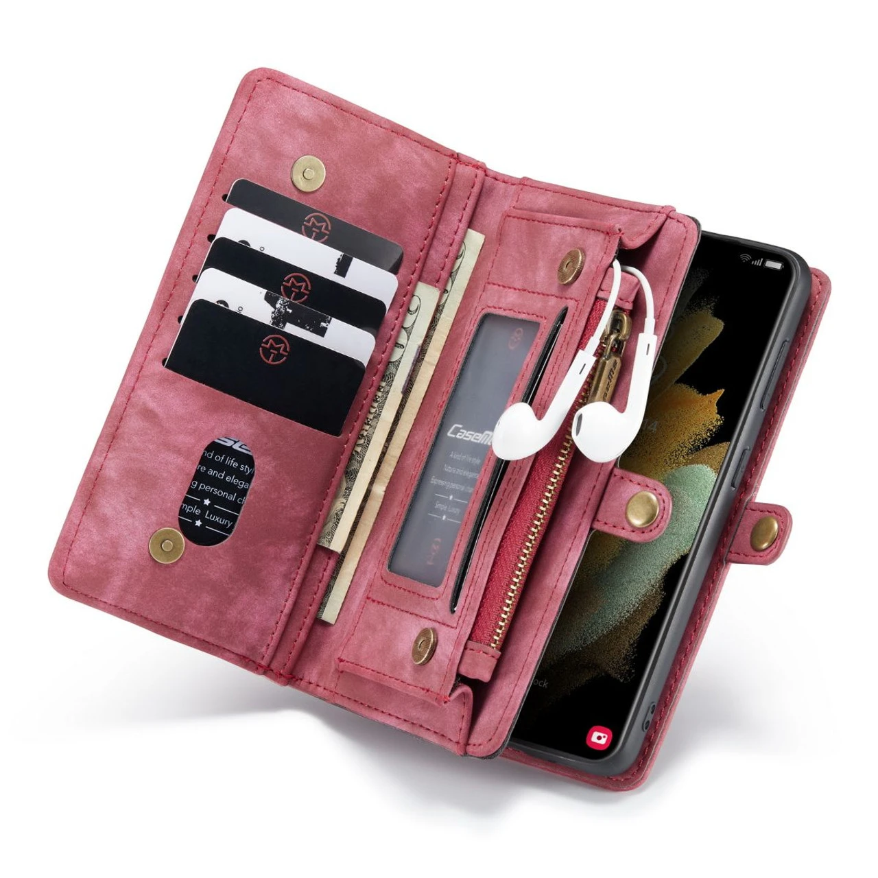 Red Galaxy S21+ Multi-Functional 2 in 1 Zipper Purse Wallet Case