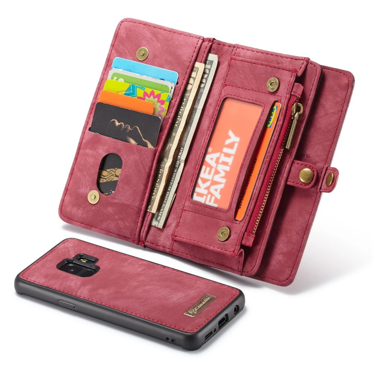 Red Galaxy S9 Multi-Functional Wallet Detachable Magnetic Case