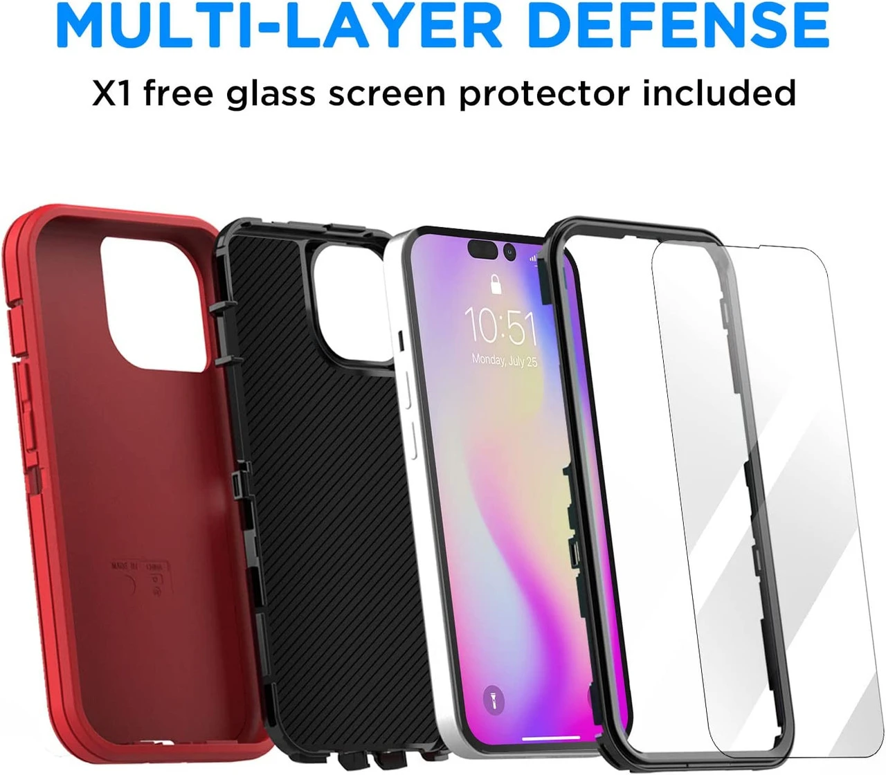 - Â Â Â 1 x Red Heavy Duty Military Defense Drop Proof Case For iPhone 14 Pro