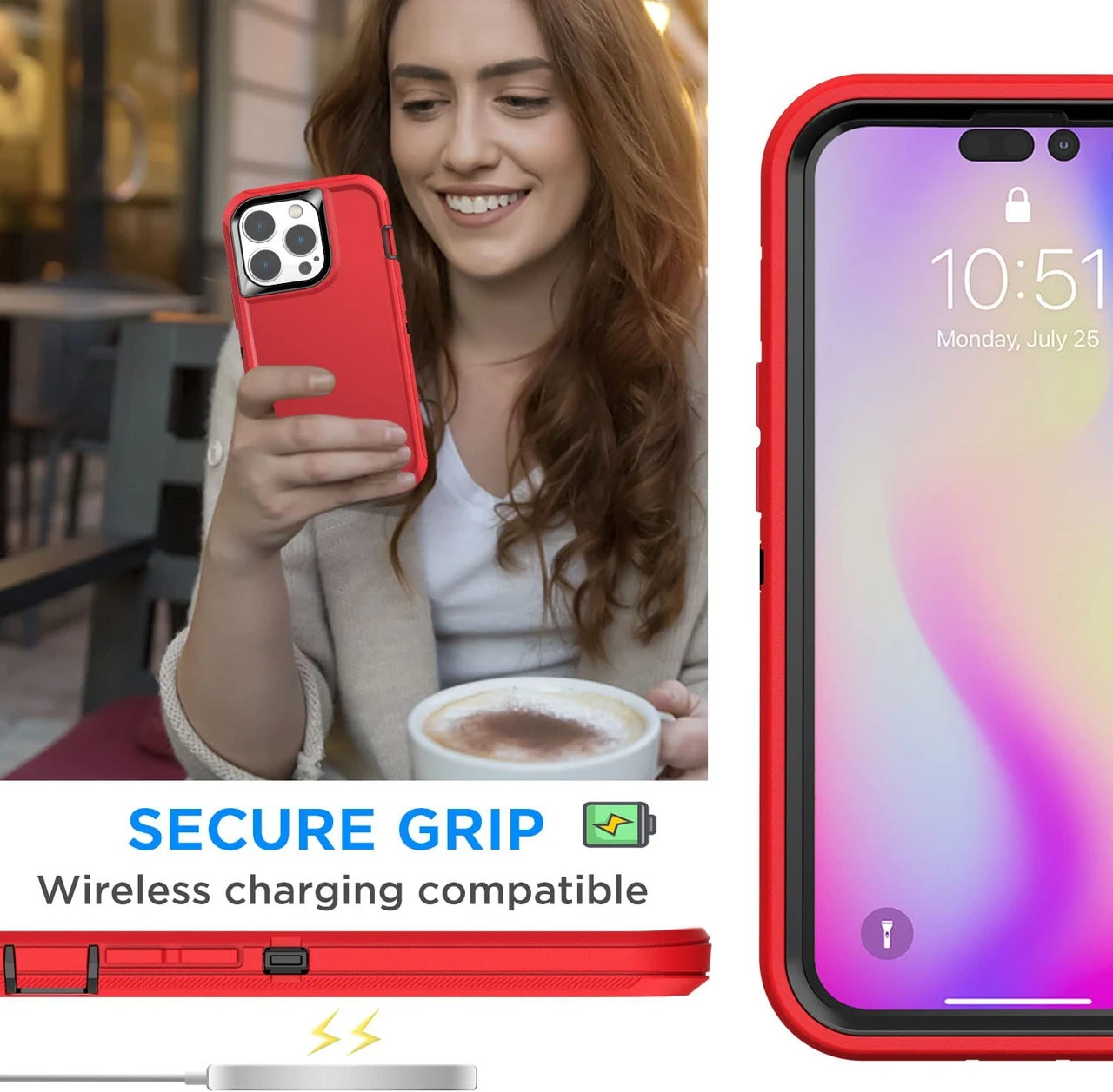 Red Heavy Duty Military Defense Drop Proof Case For iPhone 14 Pro