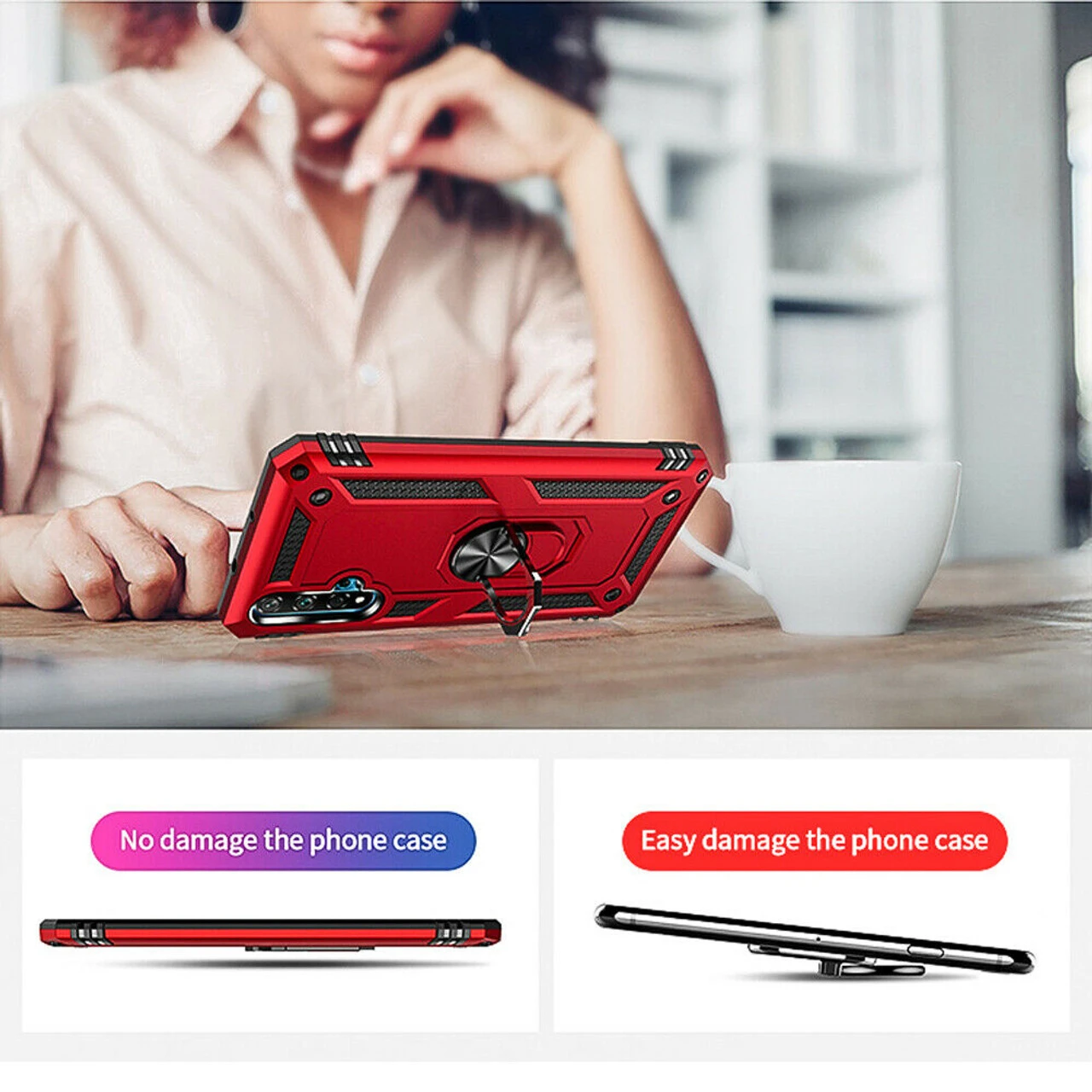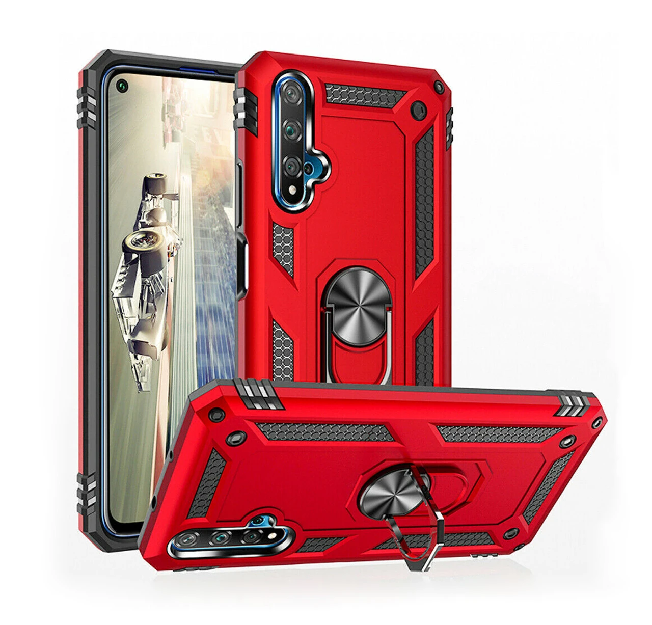 - 1 x Red Huawei Nova 5T Heavy Duty 360 Rotating Metal Ring Stand Case