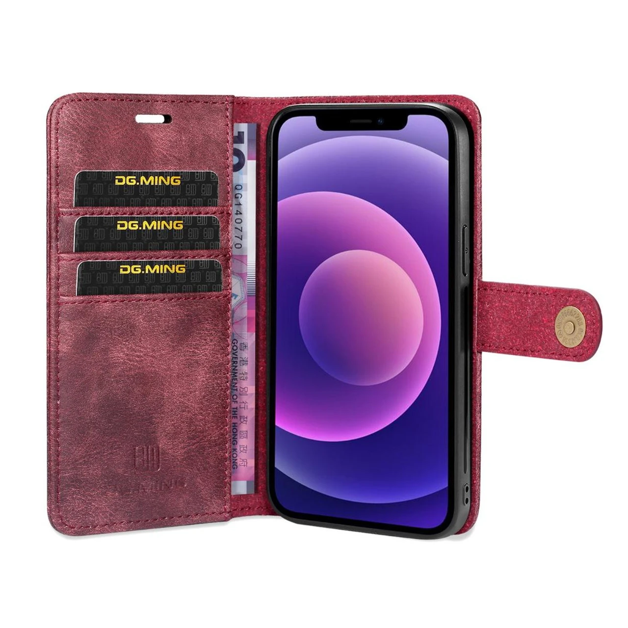 Red iPhone 13 Mini DG.Ming 2 in 1 Leather Wallet Removable Magnetic Case