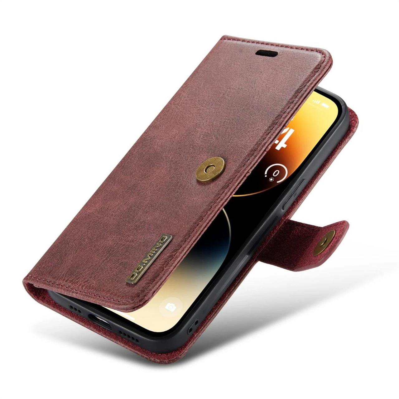 - 1 x Red iPhone 14 Pro DG.Ming Textured 3 Card 1 Cash Wallet Magnetic Case