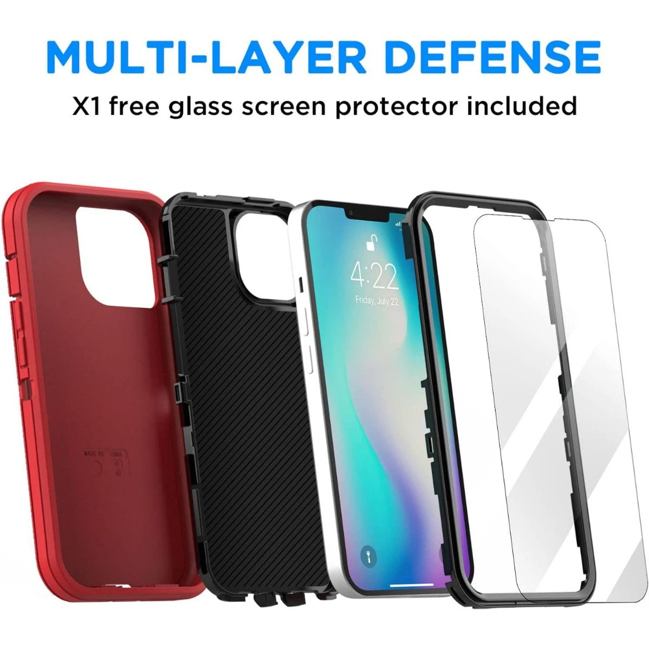 - Â Â Â 1 x Red iPhone 14 Tradies Heavy Duty Military Defender Case