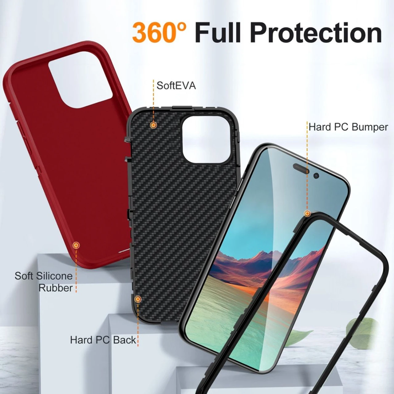 Red Military Full Body Shock Proof Defender Case For iPhone 15 Pro Max