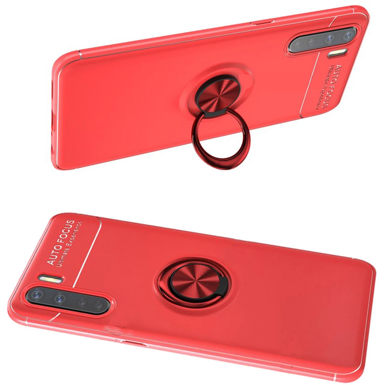 Red Oppo A91 Tough Slim Armor Shock Proof Metal Ring Stand Case