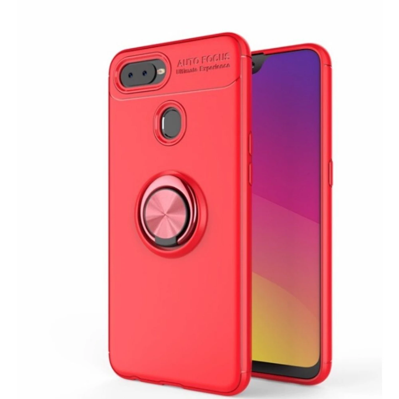 Red Oppo R15 Pro Slim Armor Metal Circle Holder 360 Ring Stand Case