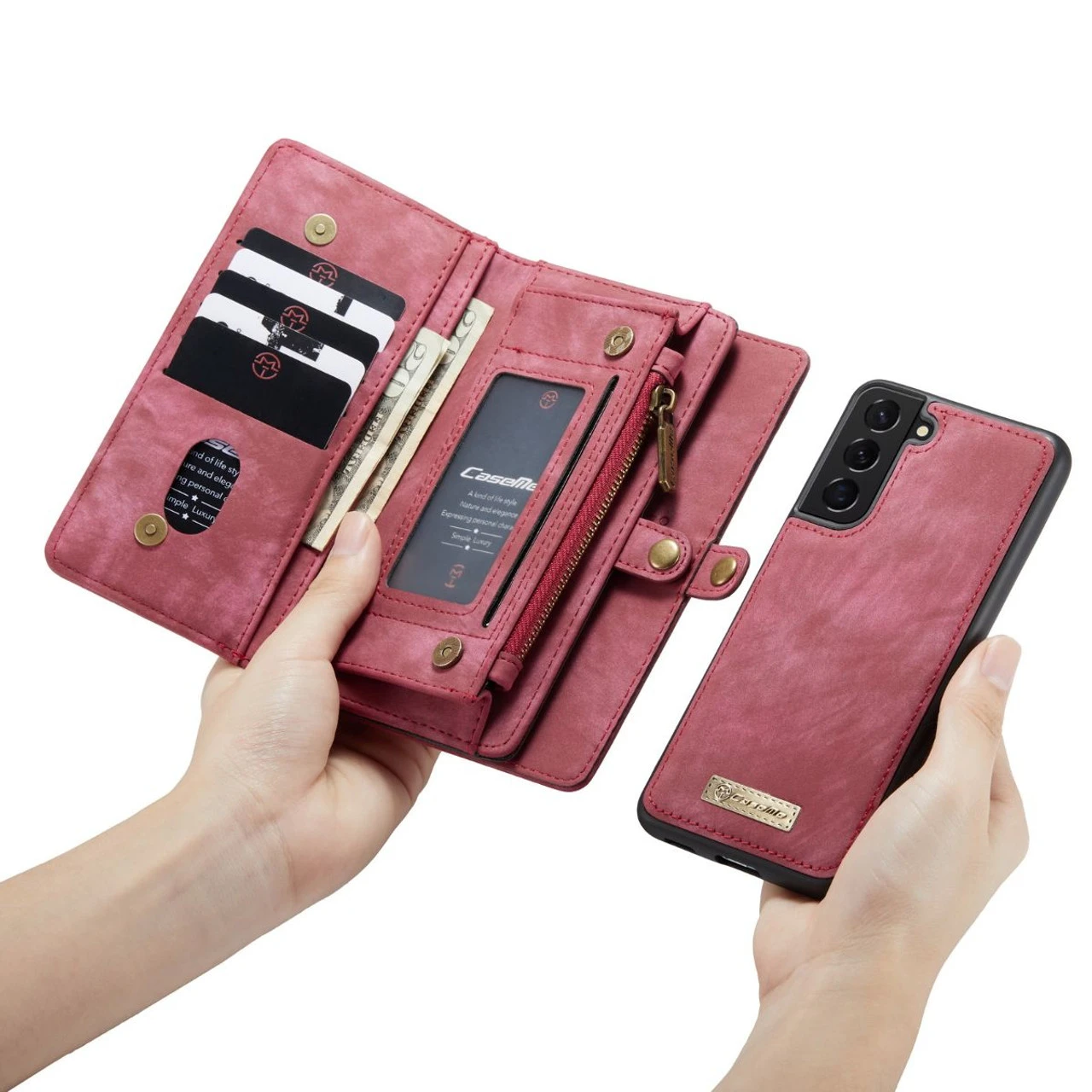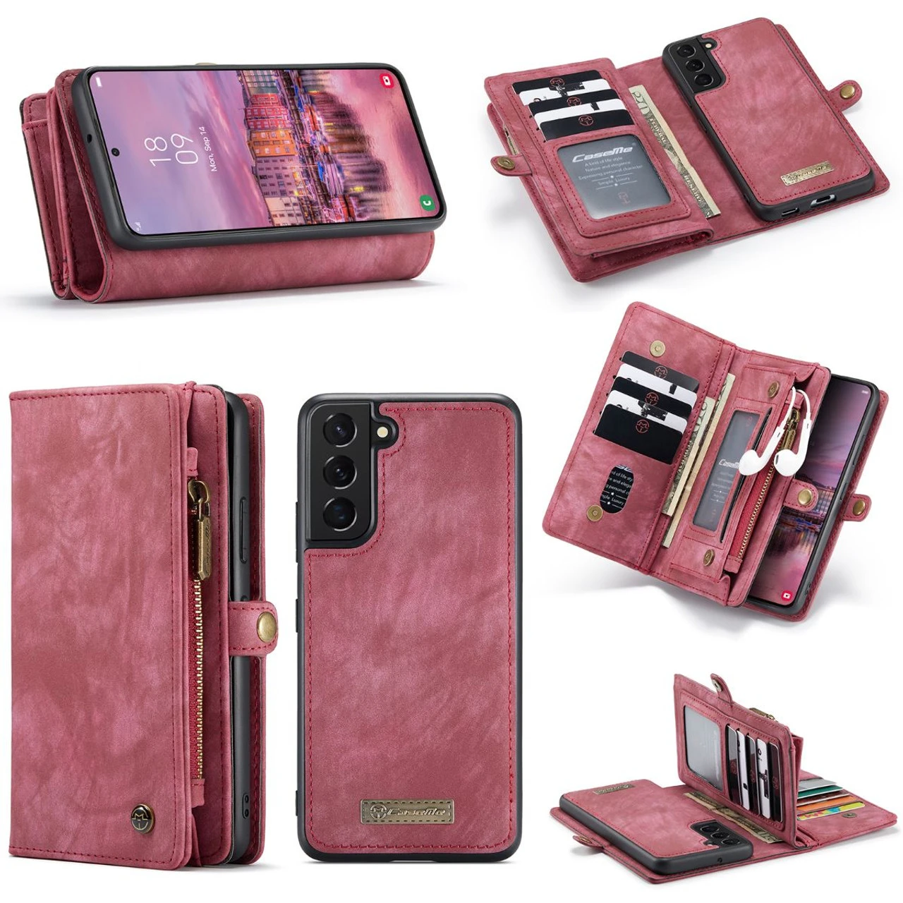 - 1 x Red Samsung Galaxy S22 Multi-Functional 2 in 1 Zipper Purse Wallet Case