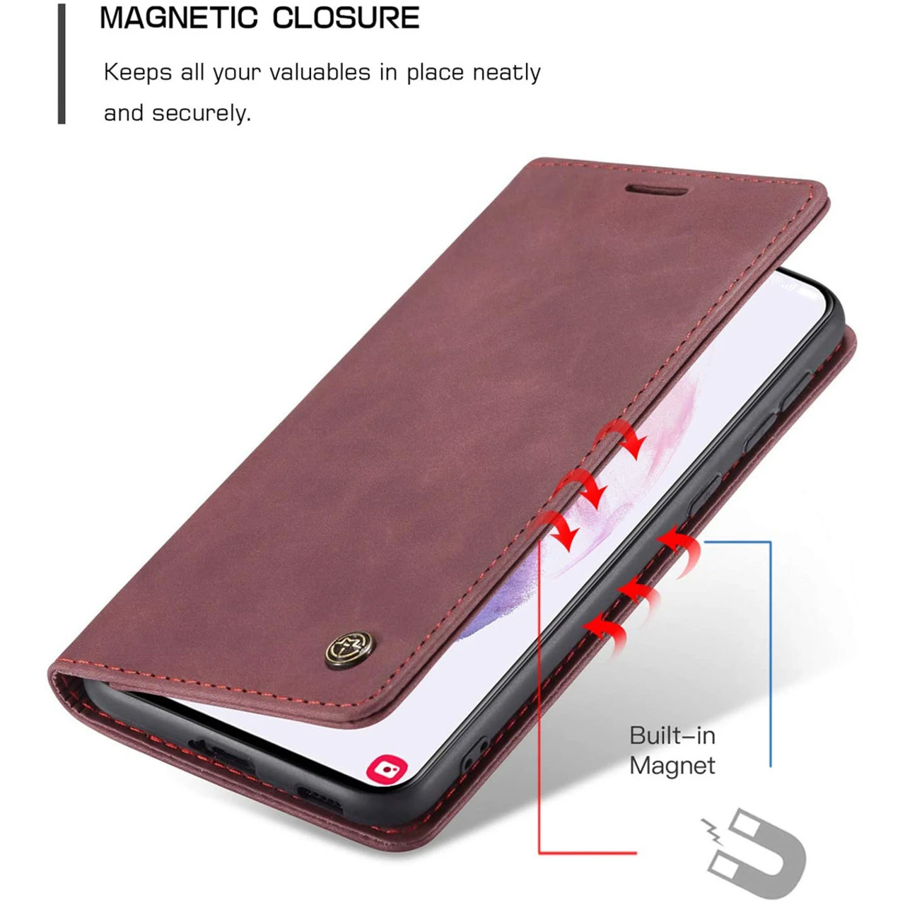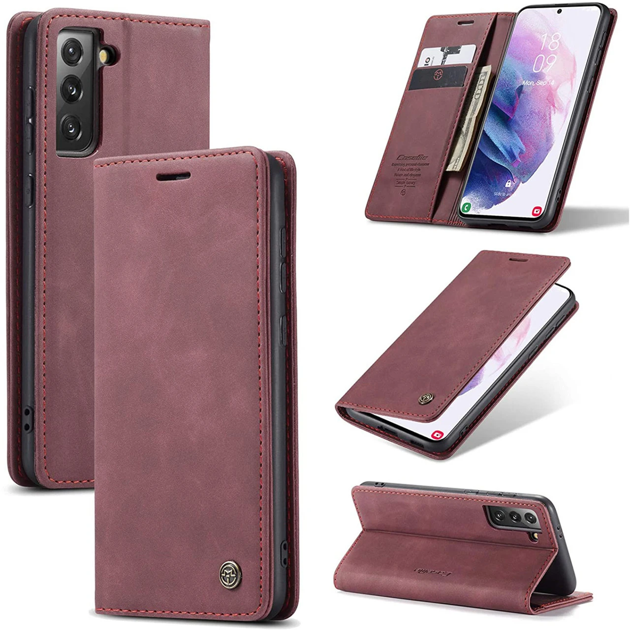 Red Wine CaseMe Samsung Galaxy S21 4G/5G Wallet Magnetic Case Cover