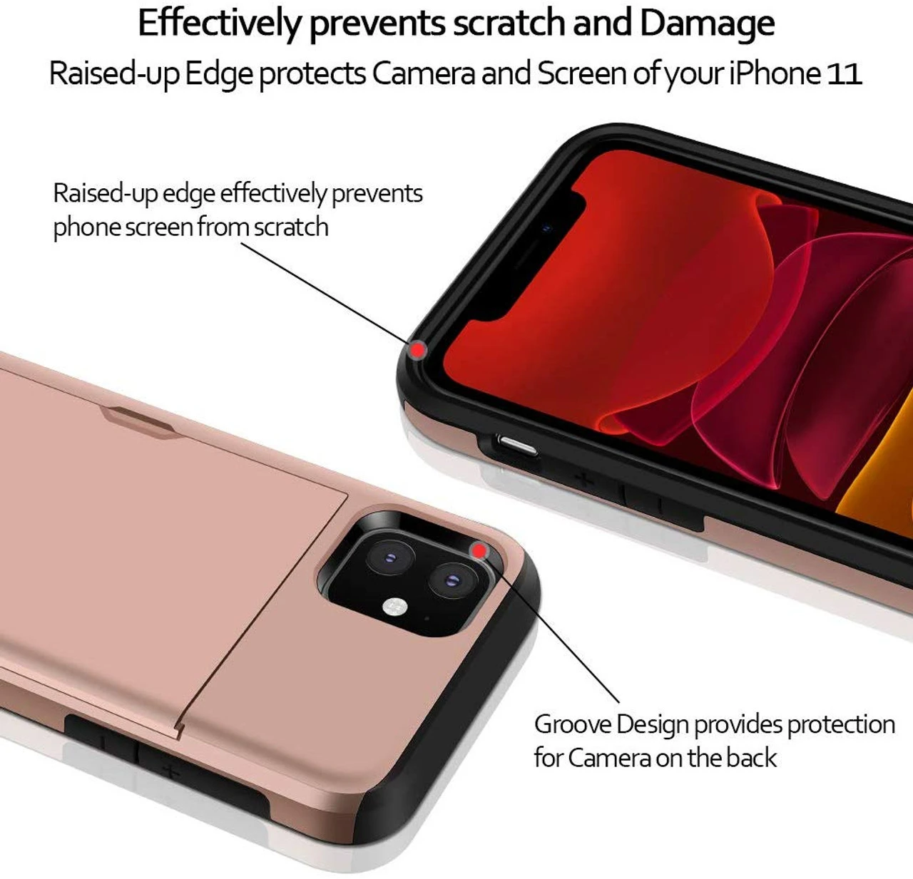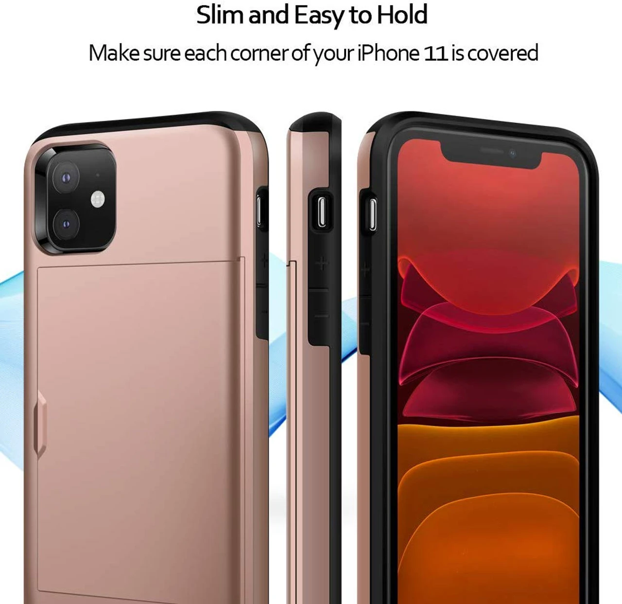 - Rose Gold Apple iPhone 11 Shock Proof Slide Card Slim Armor Case