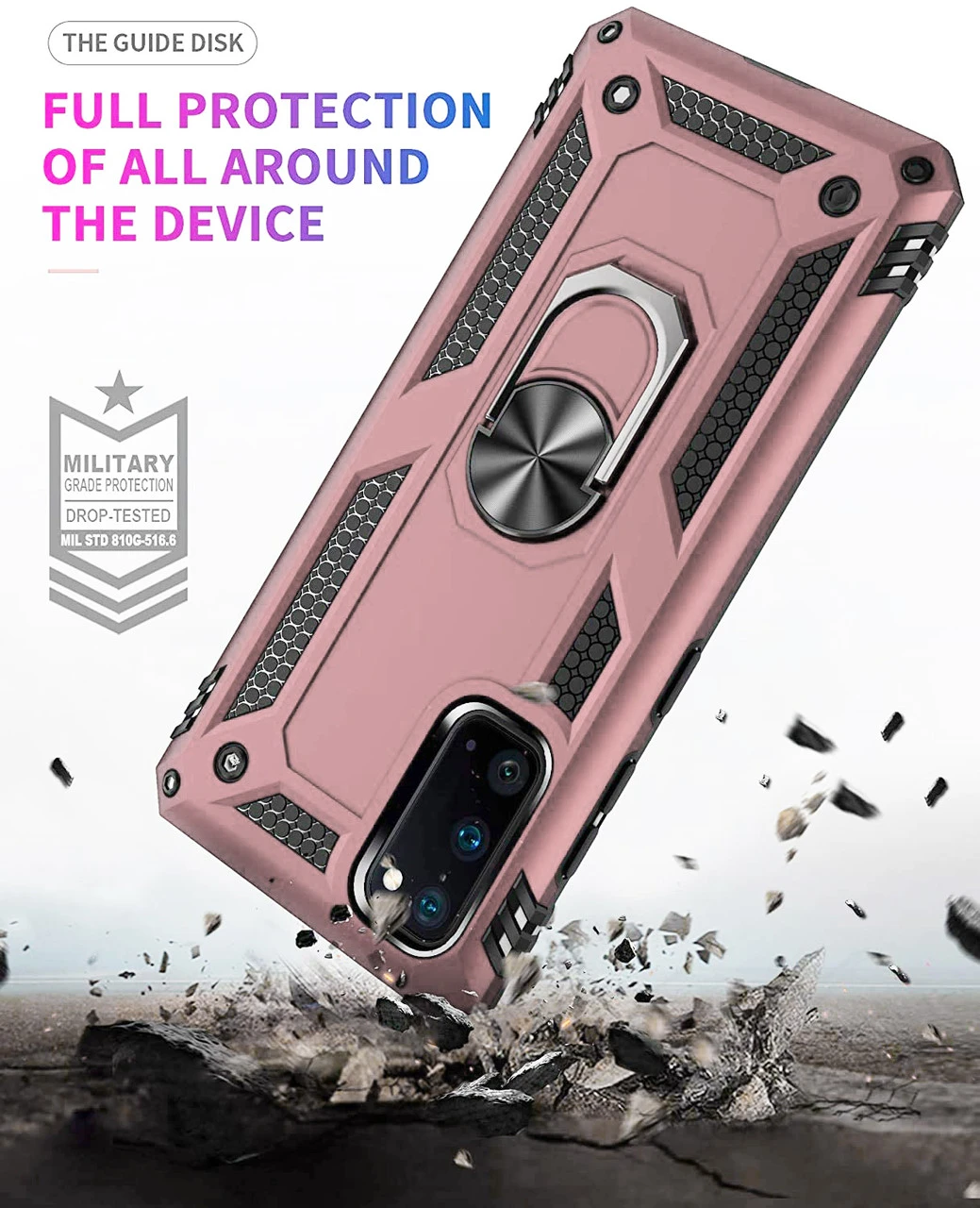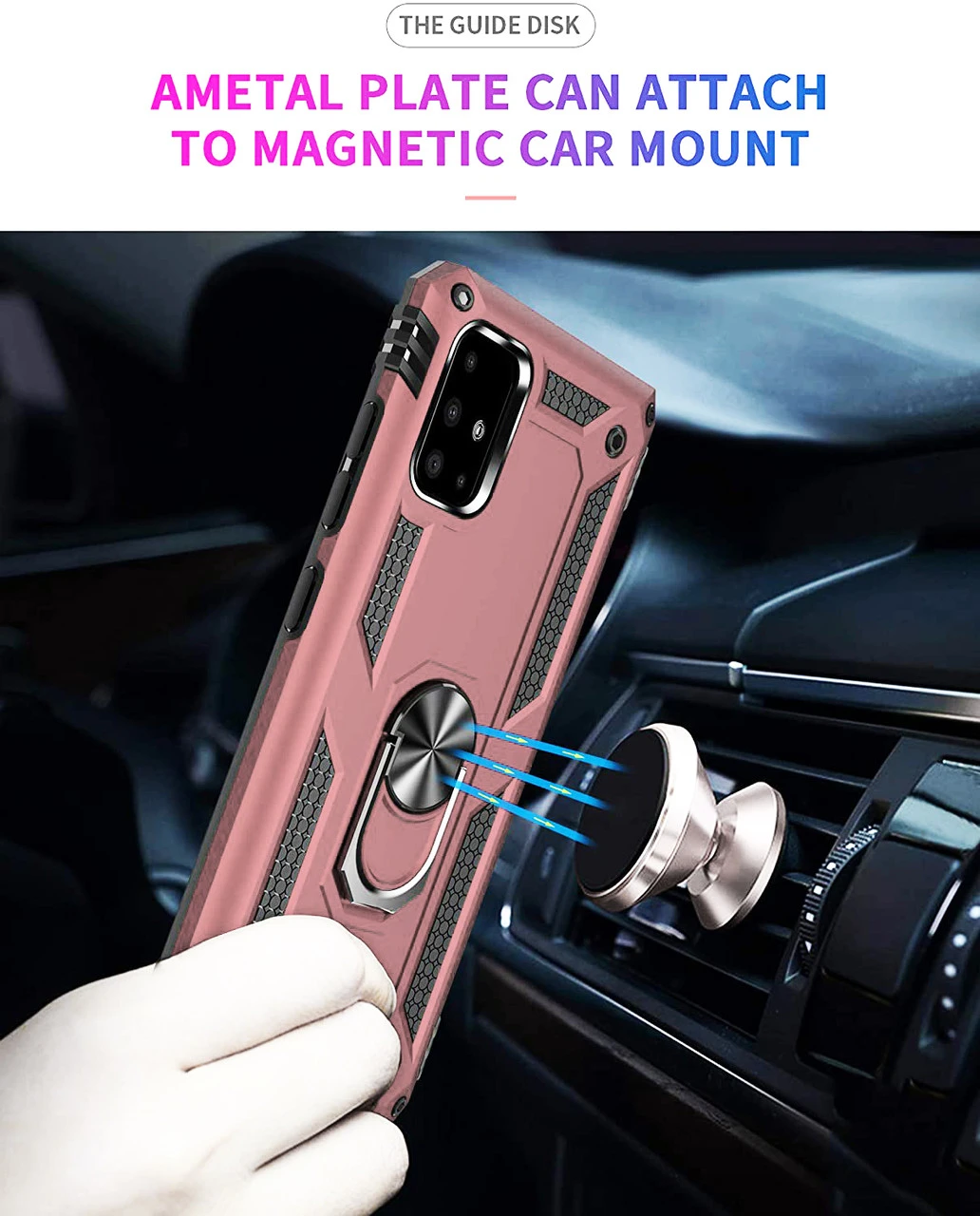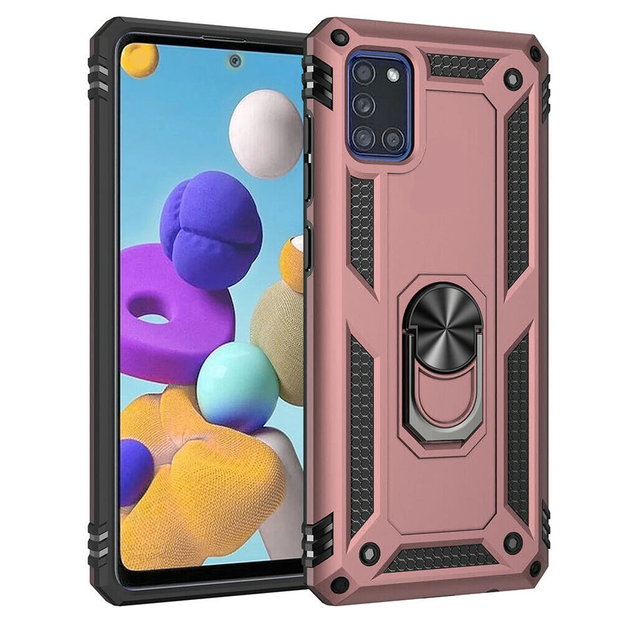 - 1 x  Rose Gold Galaxy A71 5G Rugged Armour 360 Rotating Metal Ring Case