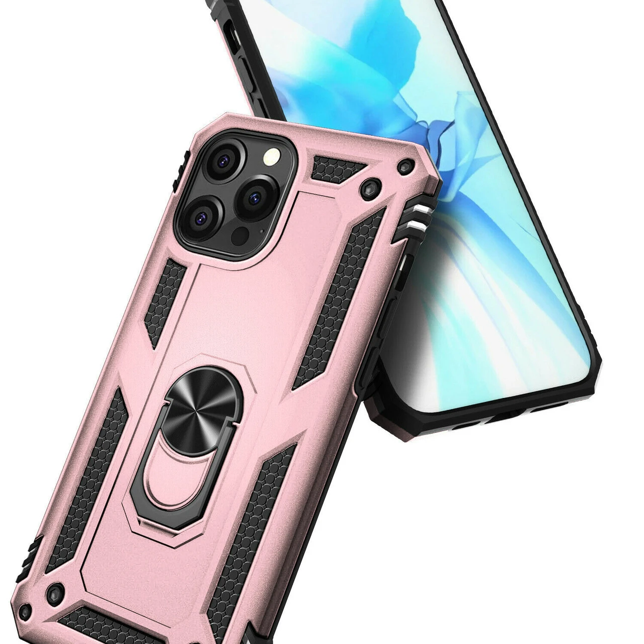 - 1 x Rose Gold Heavy Duty 360 Rotating Metal Ring Stand Case For iPhone 12 / 12 Pro