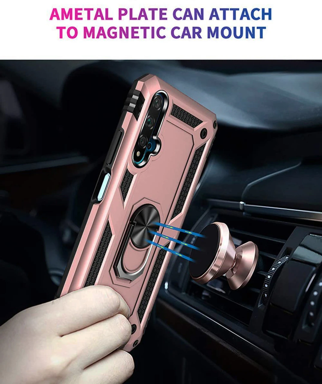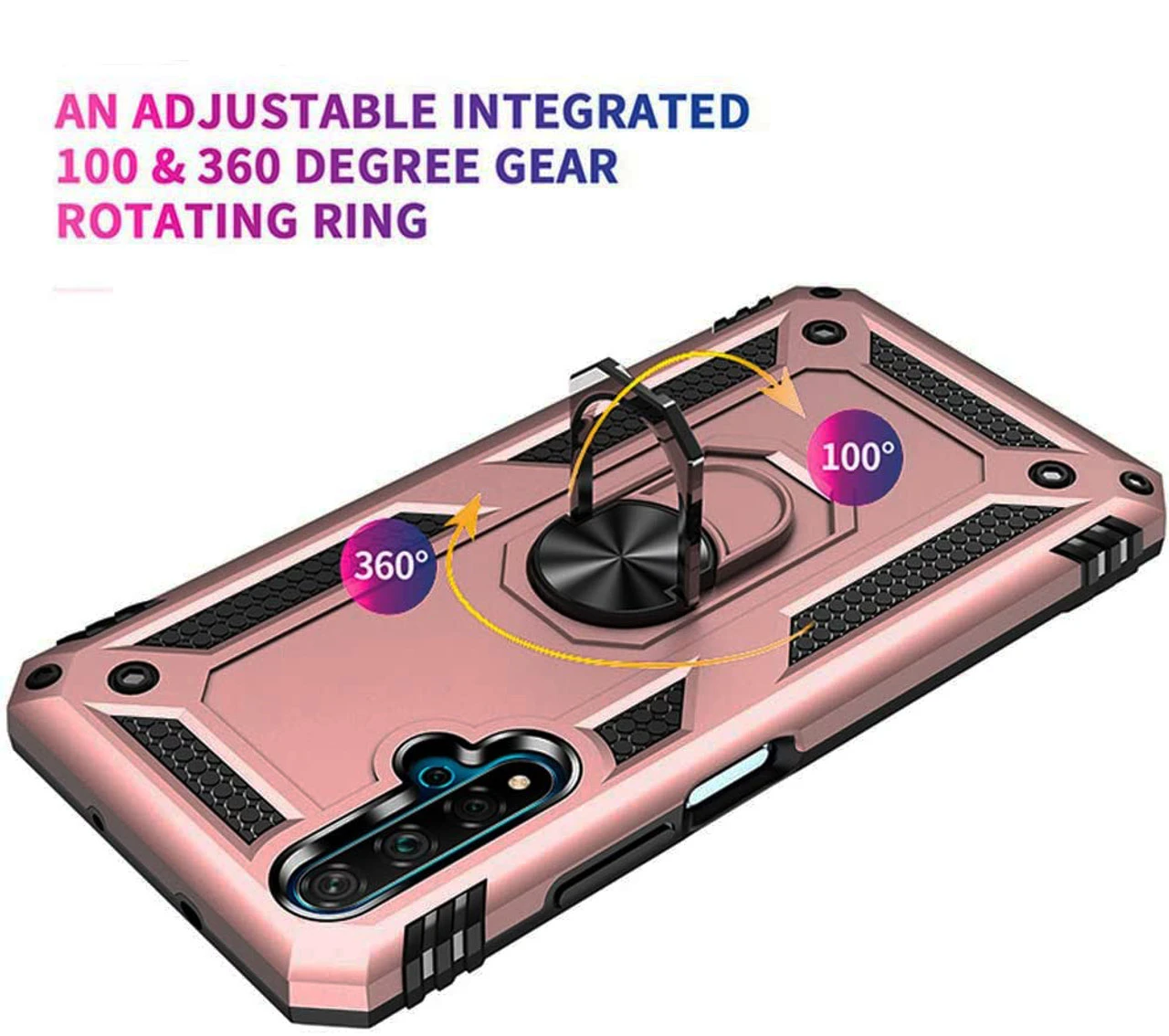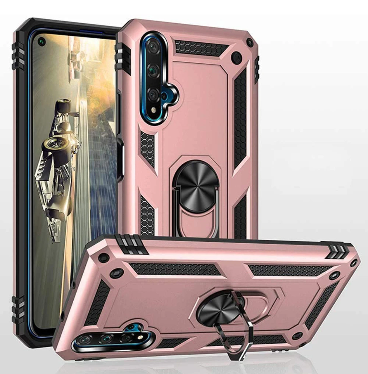 - 1 x Rose Gold Huawei Nova 5T Slim Armour 360 Rotating Metal Ring Stand Case