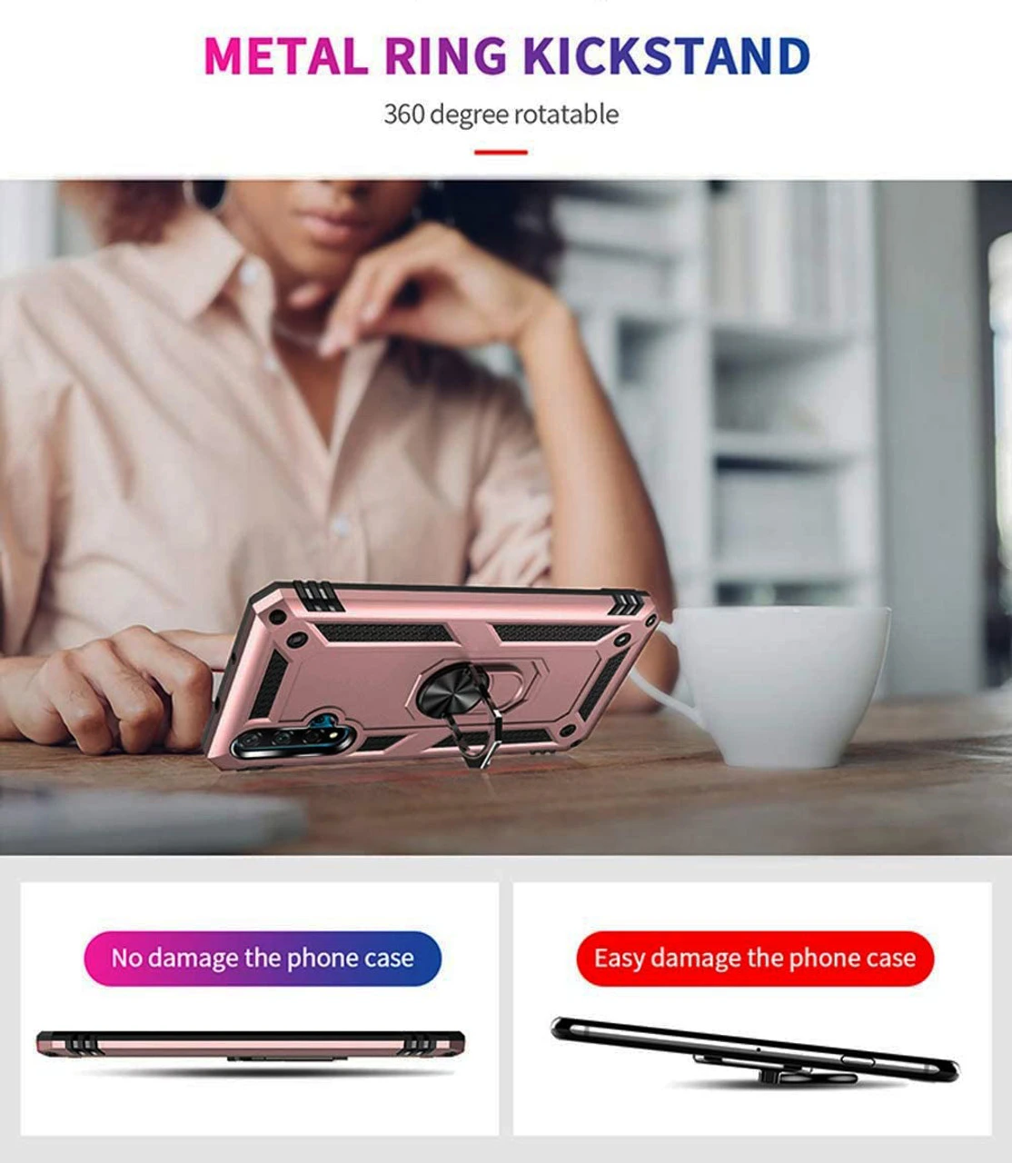 You can adjust the bracket on the back of the case, 360 degree rotation of the ring bracket, to promote better one-handed use and control of the mobile phone for personalized comfort and hands-free use