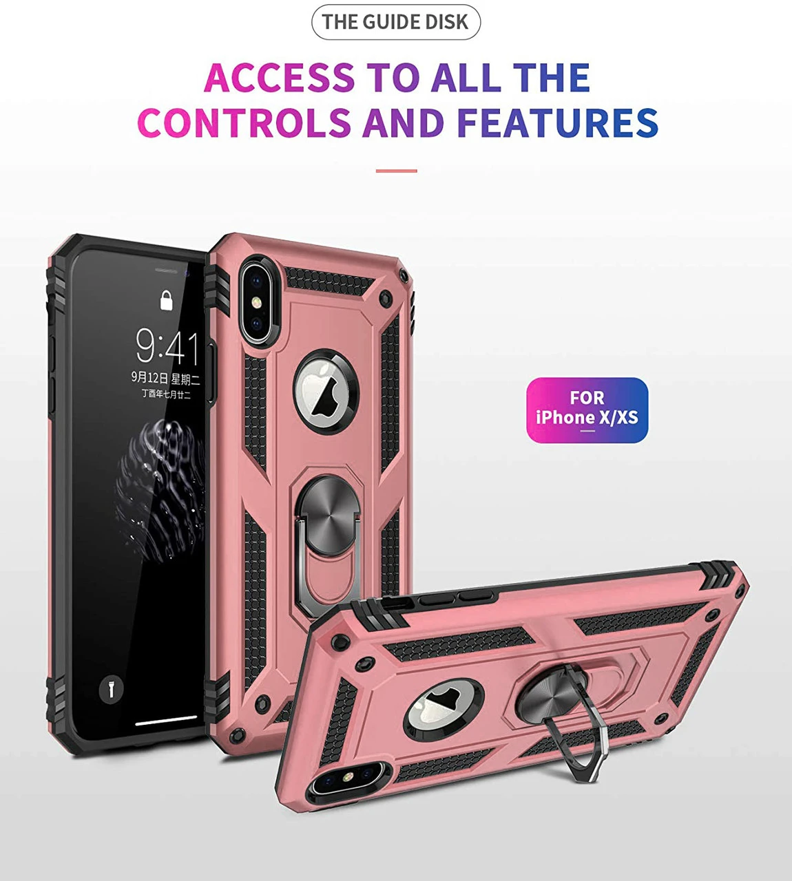 - 1 x Rose Gold Hybrid Shock Proof Rotating Metal Ring Case For iPhone XRÂ