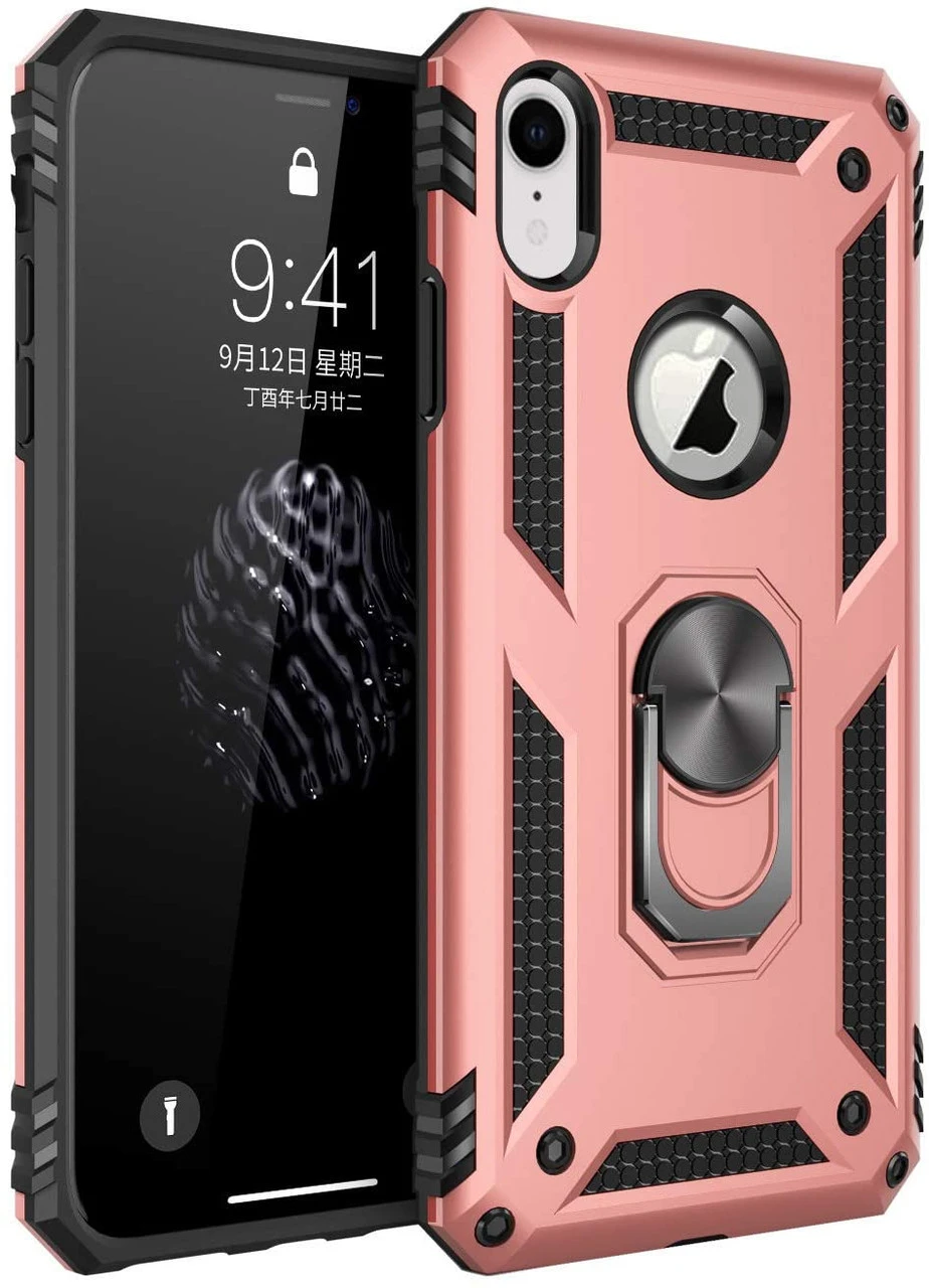 Rose Gold Hybrid Shock Proof Rotating Metal Ring Case For iPhone XRÂ
