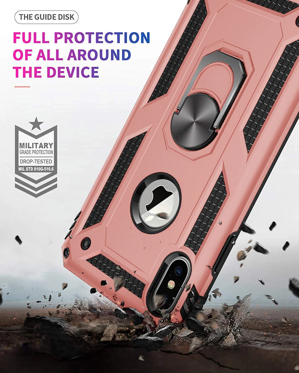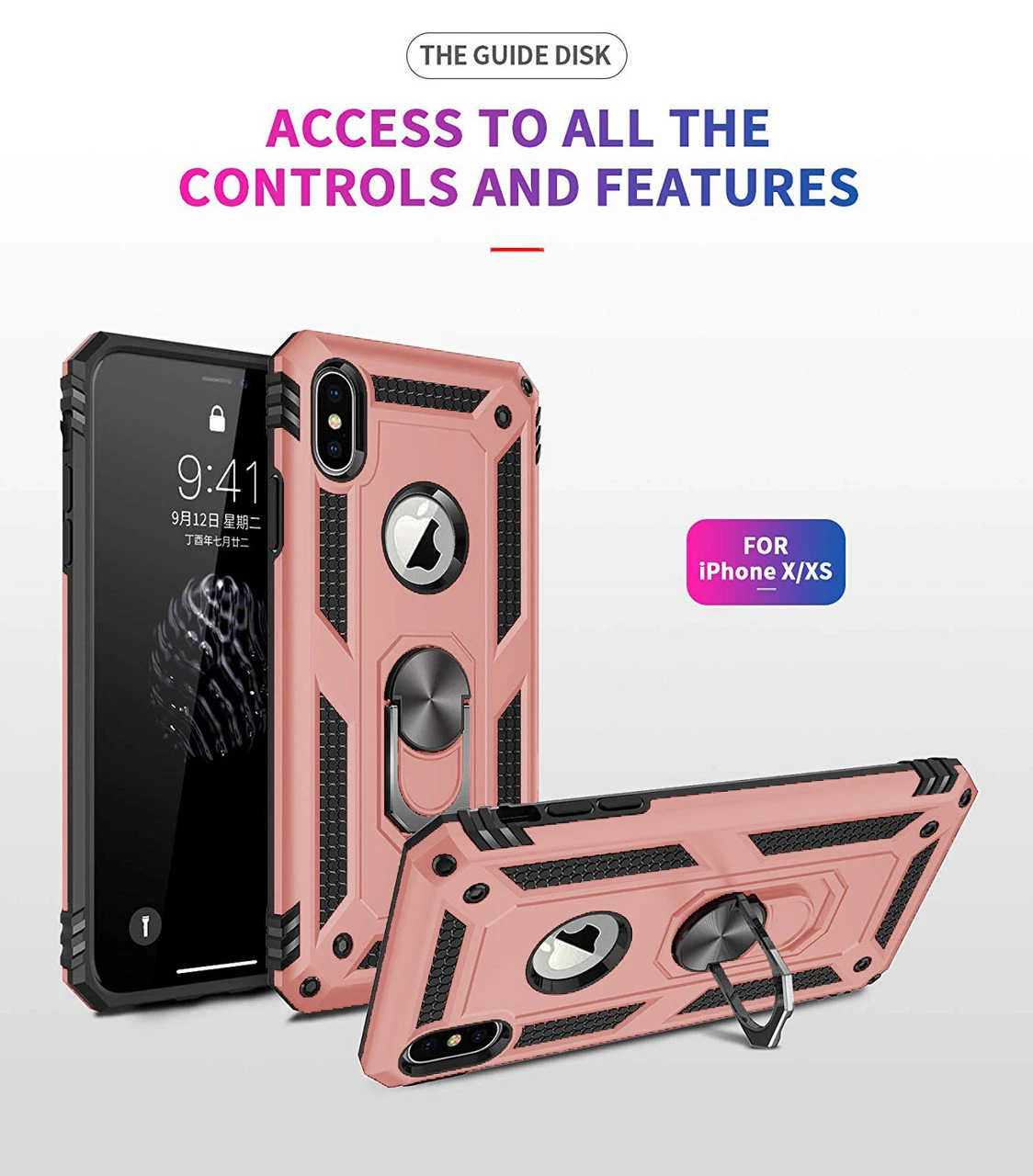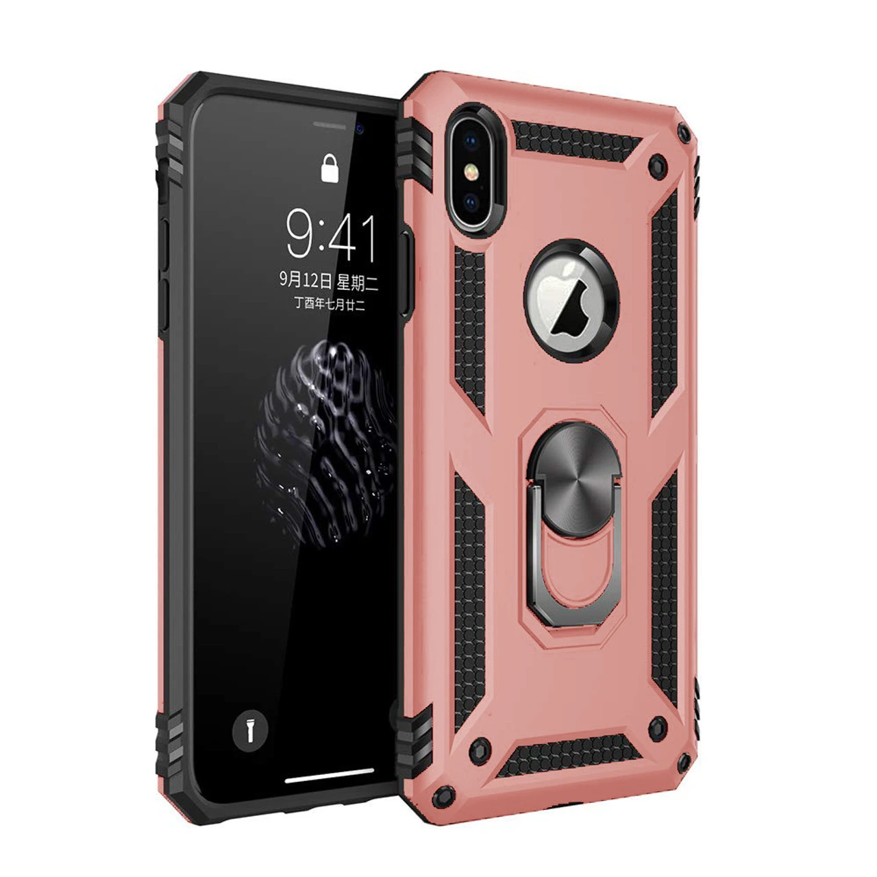 Function, stylish and handy ring with powerful shock absorption Rose Gold iPhone X / XS Metal 360 Degree Ring Armour Stand Case.