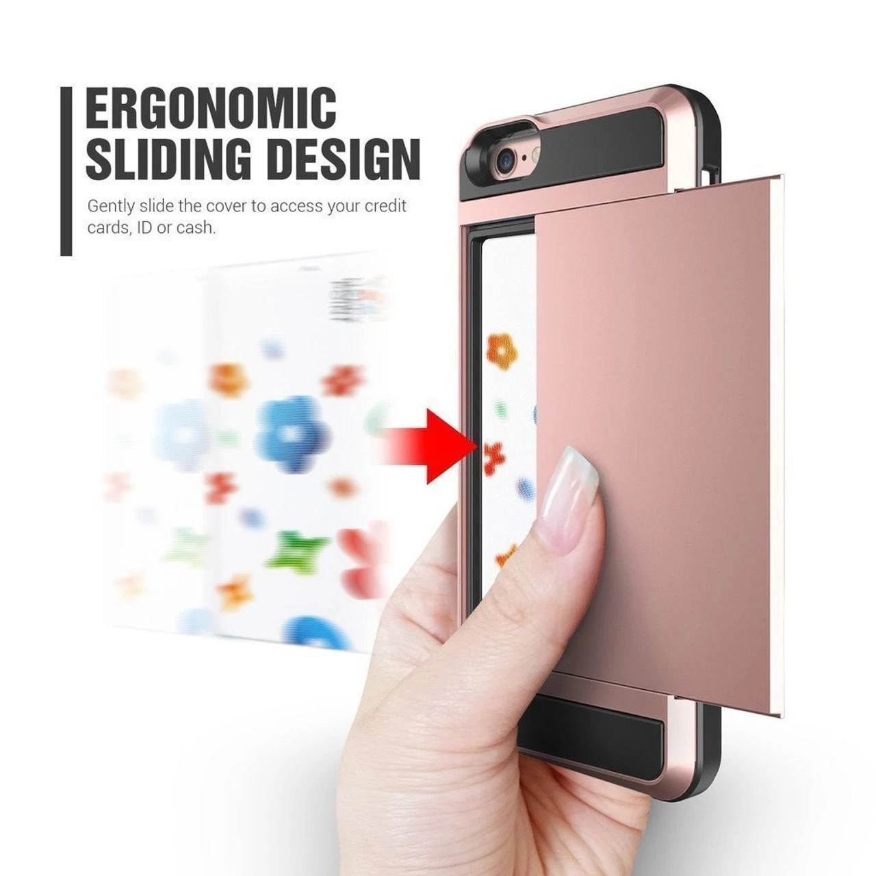- Rose Gold Slide Armor Case with Card Slot Holder For Apple iPhone 6 / 6S