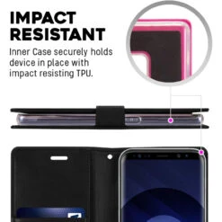 Black Galaxy S9 Mercury Bluemoon Premium Wallet Stand Case Cover