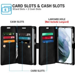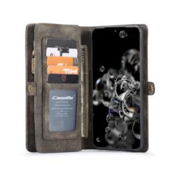 Black Galaxy S21 Ultra 2 In 1 Magnetic Retro Purse / Wallet Case