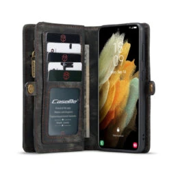 Black Galaxy S21 Wallet Zipper Purse Removeable Magnetic Case