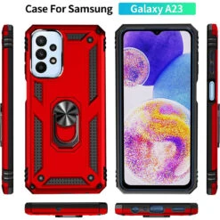 Red Hybrid Shock Proof Rotating Metal Ring Case For Galaxy A13
