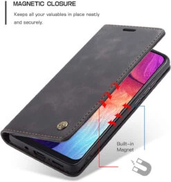 Black Galaxy A70 CaseMe Premium Compact Flip Wallet Card Case