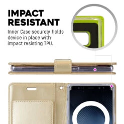 Shiny Gold Galaxy Note 9 Genuine Rich Diary Wallet Card Slot Case