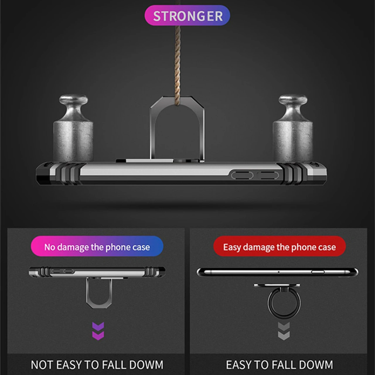 You can adjust the bracket on the back of the case, 360 degree rotation of the ring bracket, to promote better one-handed use and control of the mobile phone for personalized comfort and hands-free use