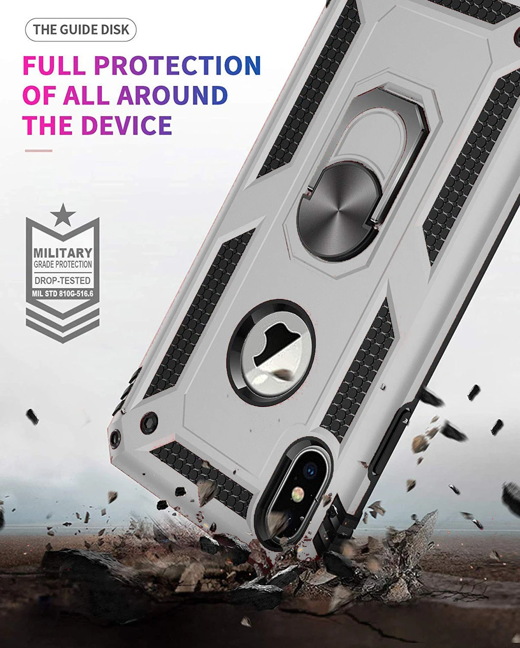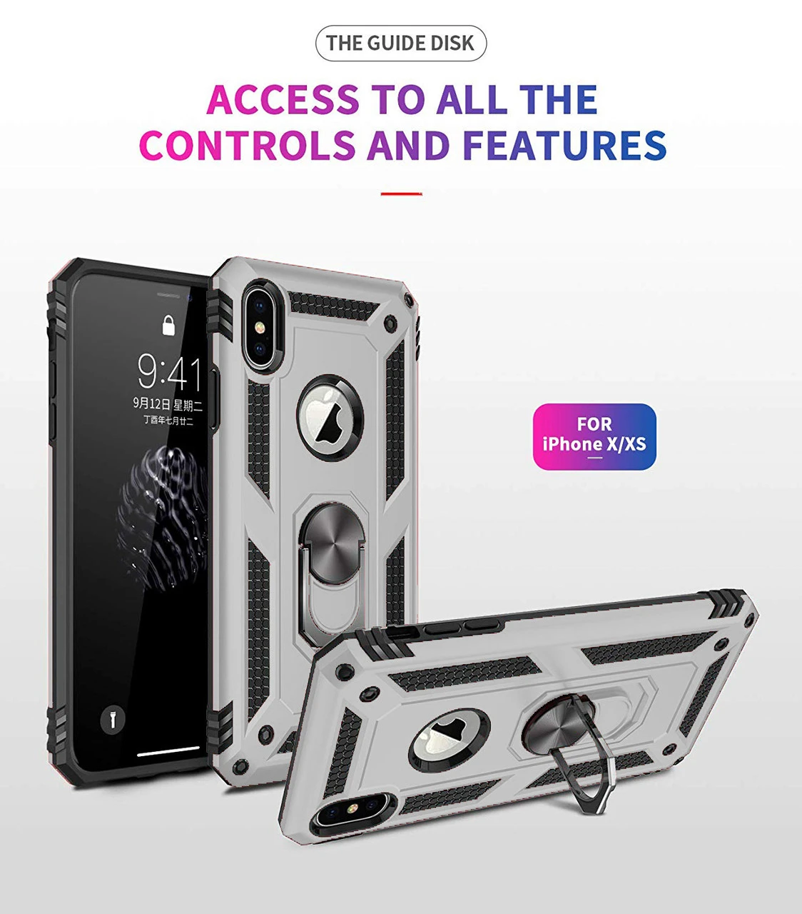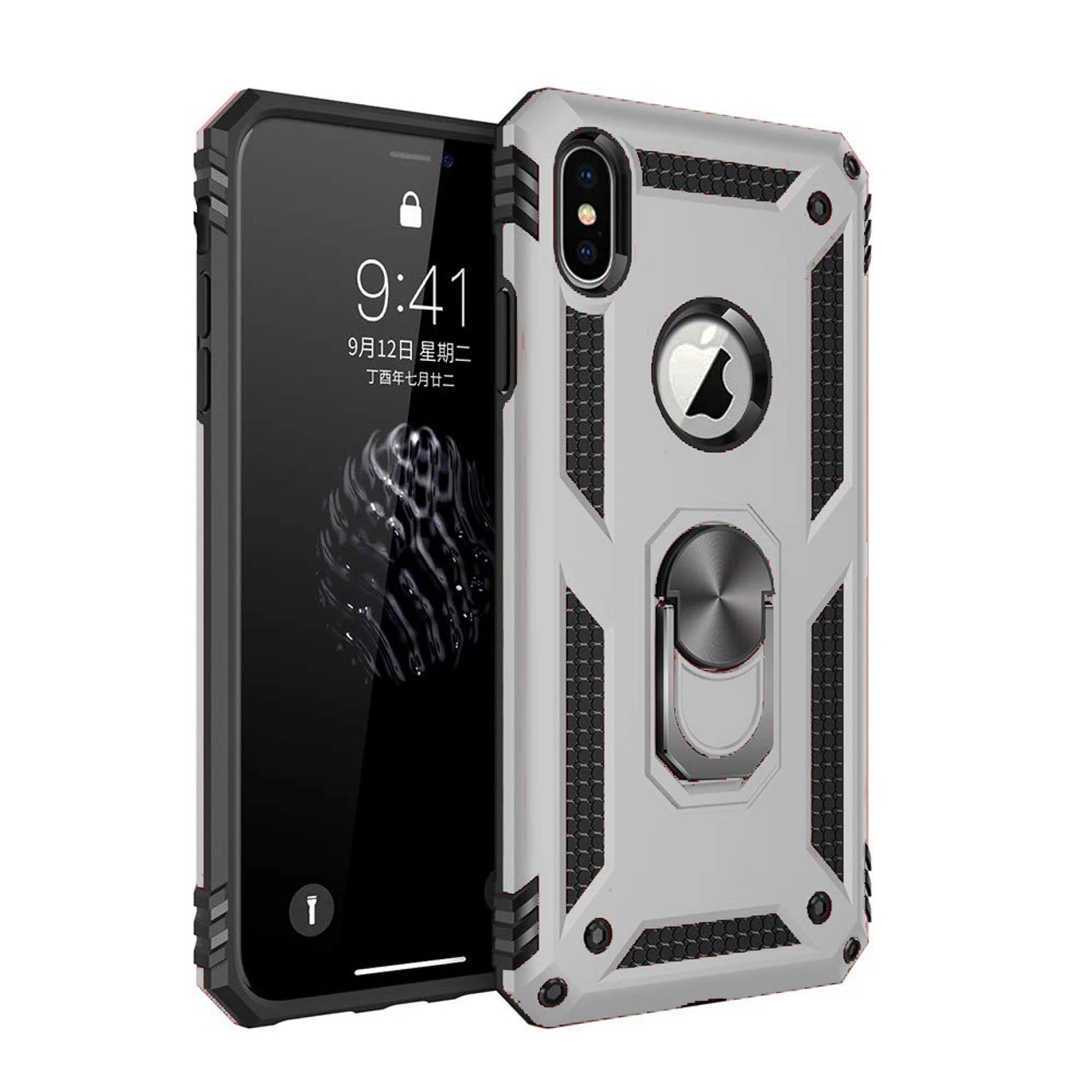 - 1 x Silver Slim Armour 360 Degree Ring Stand Case For iPhone X / XS