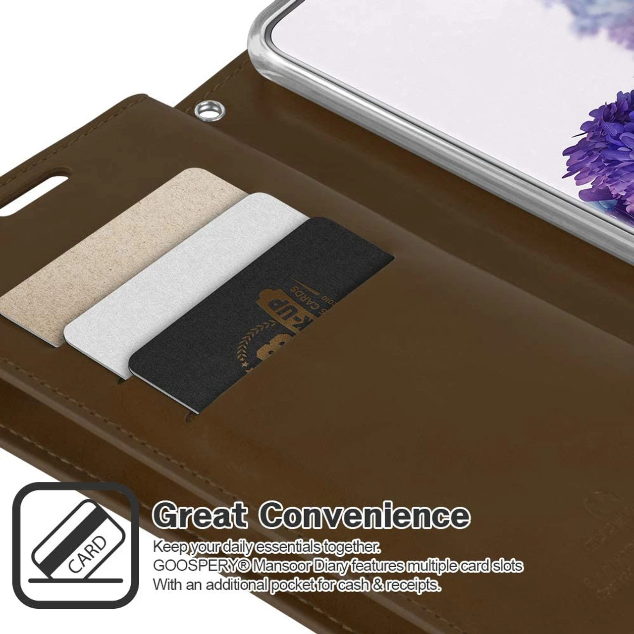 Designed with an attached center flap to provide more compartments for credit/ID cards and cash compared to other diary type cases out there, eliminating the need to carry a separate wallet.