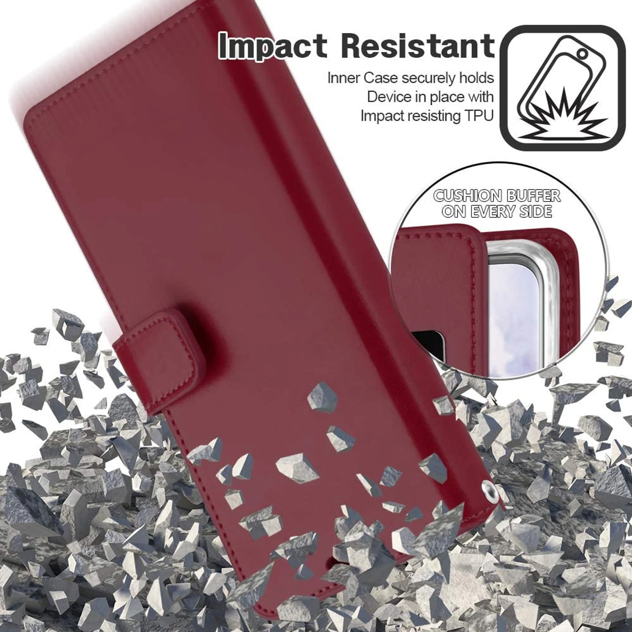 Made of premium PU leather, slim and sleek design adds classic look. It is constructed with 9 card slots & 2 side pockets inside the case and snap closure for easy to use. Make your Galaxy A13 5G practical in style.